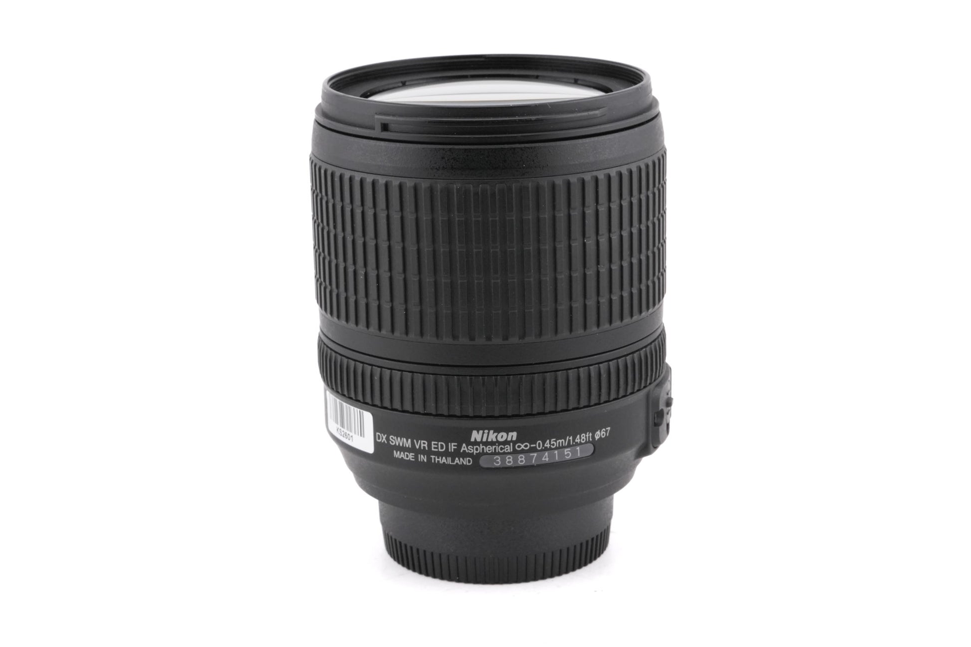 Autofocus telephoto zoom lens made for DX-mount digital SLR cameras by Nikon. It is designed for APS-C-sized sensors and gives the equivalent field of view to a 27-158 mm lens on full frame/35mm. It has image stabilization (VR). Plastic body available in black.