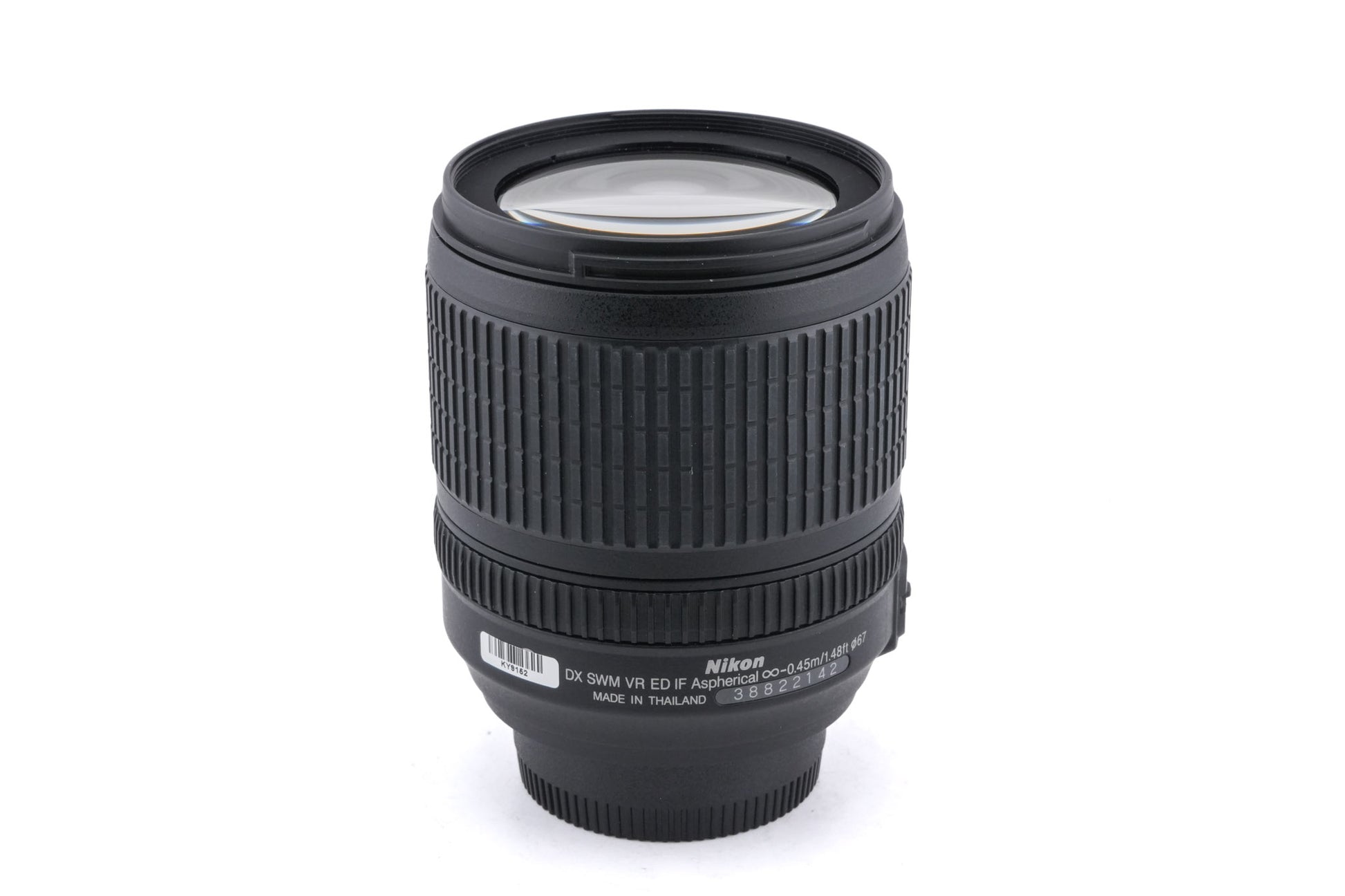 Autofocus telephoto zoom lens made for DX-mount digital SLR cameras by Nikon. It is designed for APS-C-sized sensors and gives the equivalent field of view to a 27-158 mm lens on full frame/35mm. It has image stabilization (VR). Plastic body available in black.