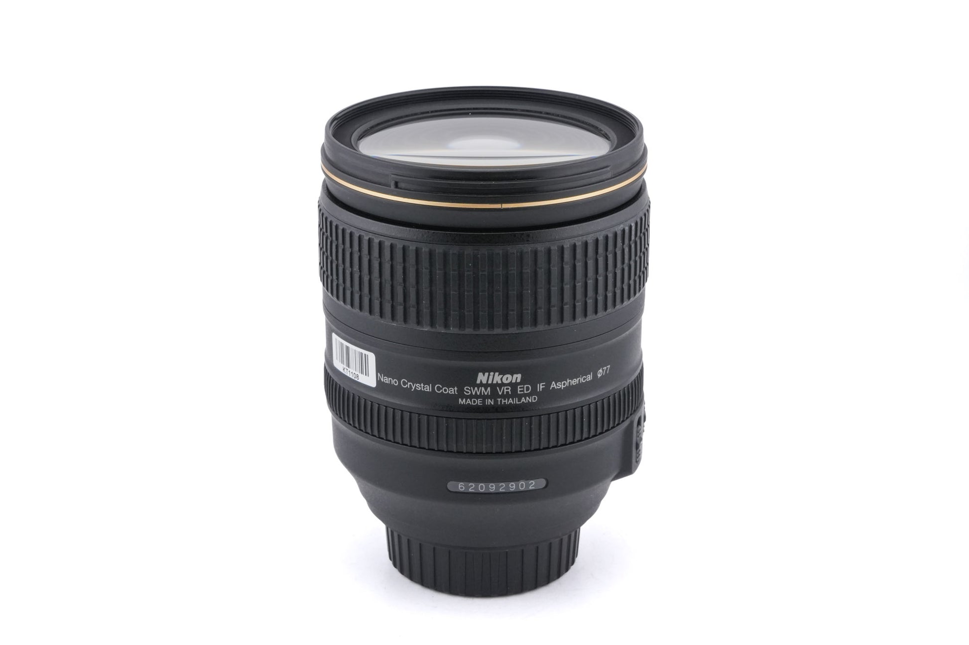 Autofocus normal zoom lens made for F-mount SLR cameras introduced by Nikon. It has image stabilization (VR), uses aspherical elements to improve image quality and lower size, and uses Nikon's Silent Wave Motor (SWM) for autofocus. Plastic and metal body available in black.