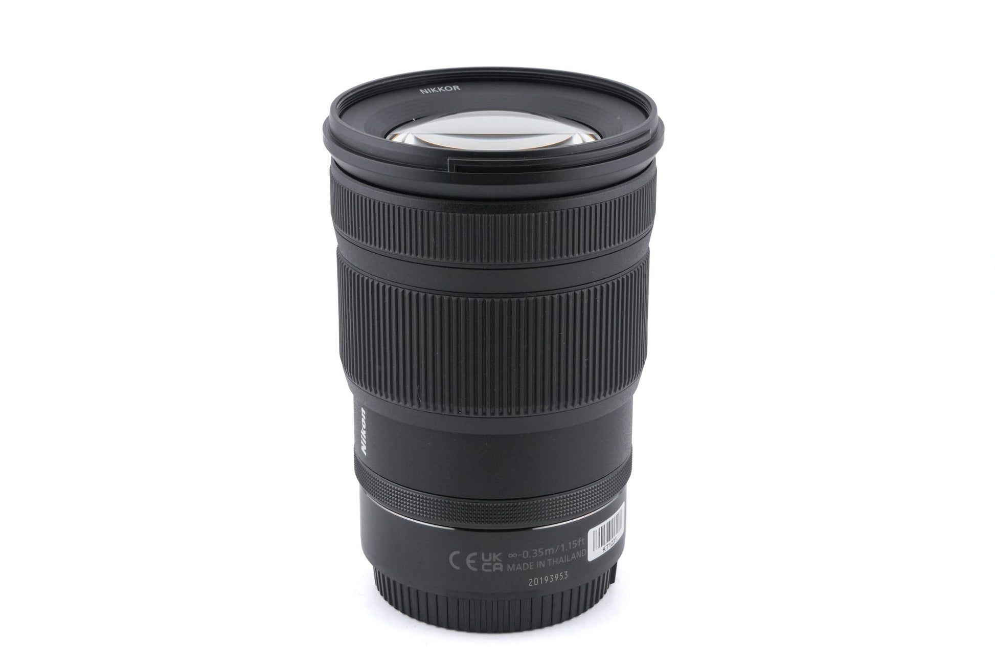 Autofocus normal zoom lens made for Z-mount digital mirrorless cameras introduced by Nikon in 2021. It has a dedicated function ring and an auto/manual focus switch. The lens design contains 3 aspherical elements and 3 Extra-Low Dispersion (ED) elements meant to improve contrast and sharpness. Plastic and metal body available in black.