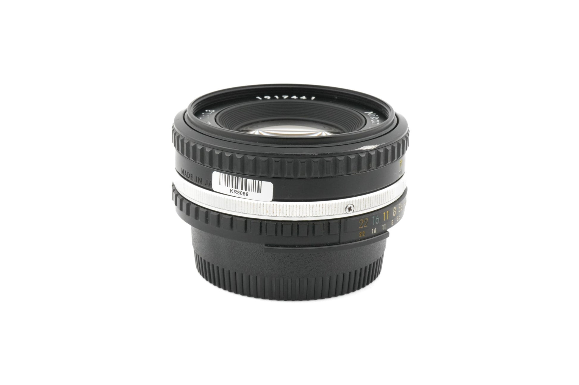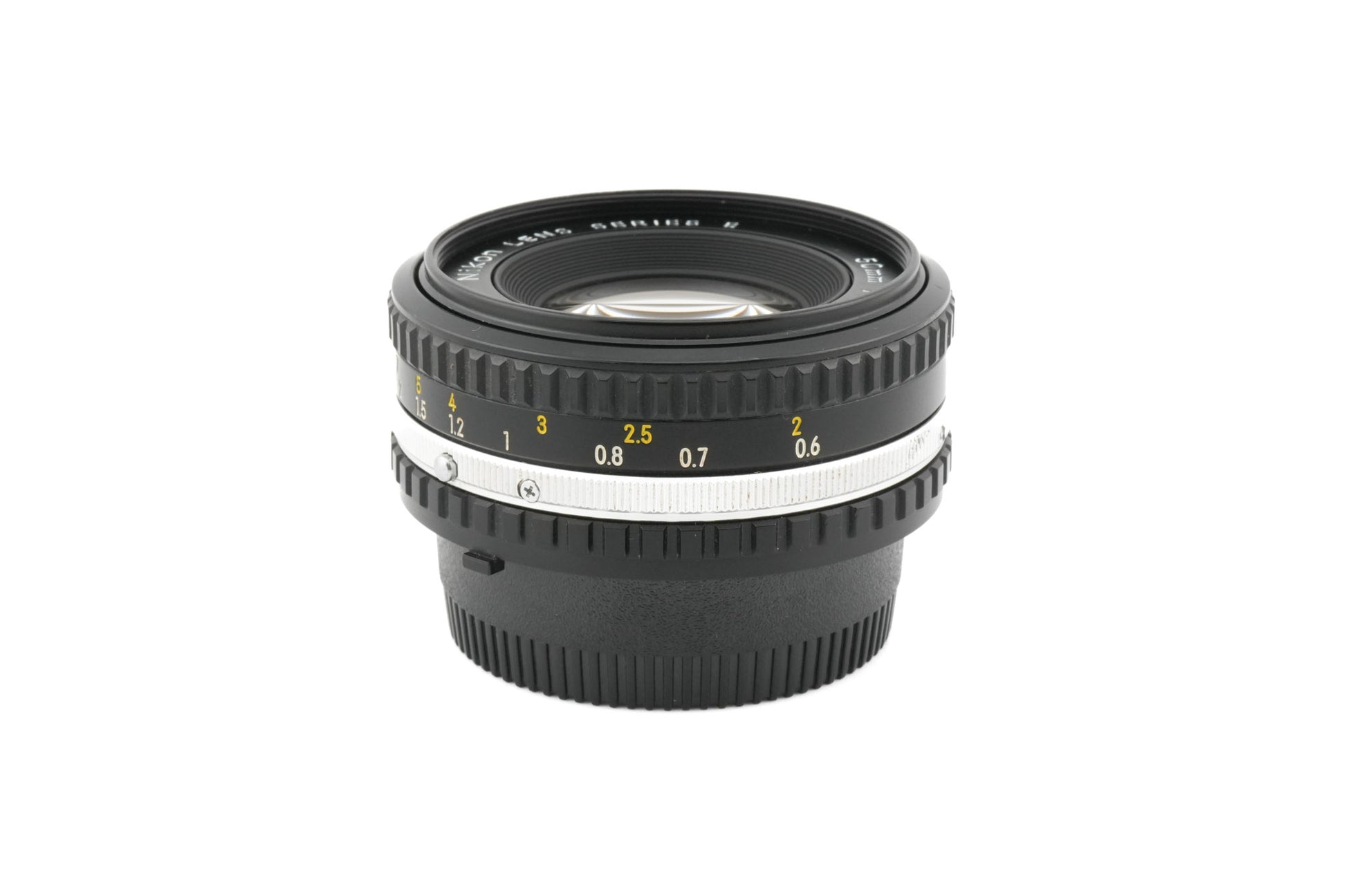 Manual focus normal lens made for F-mount 35mm SLRs by Nikon. It does not have the bunny ear metering prongs but does have the AI ridge and AI-S indent, so it will meter properly on nearly all manual focus Nikon cameras (excluding F, F2, and Nikkormat) and will work with the advanced program modes of later models. Early versions are all black, and later versions have a chrome ring. Metal and plastic body available in black.
