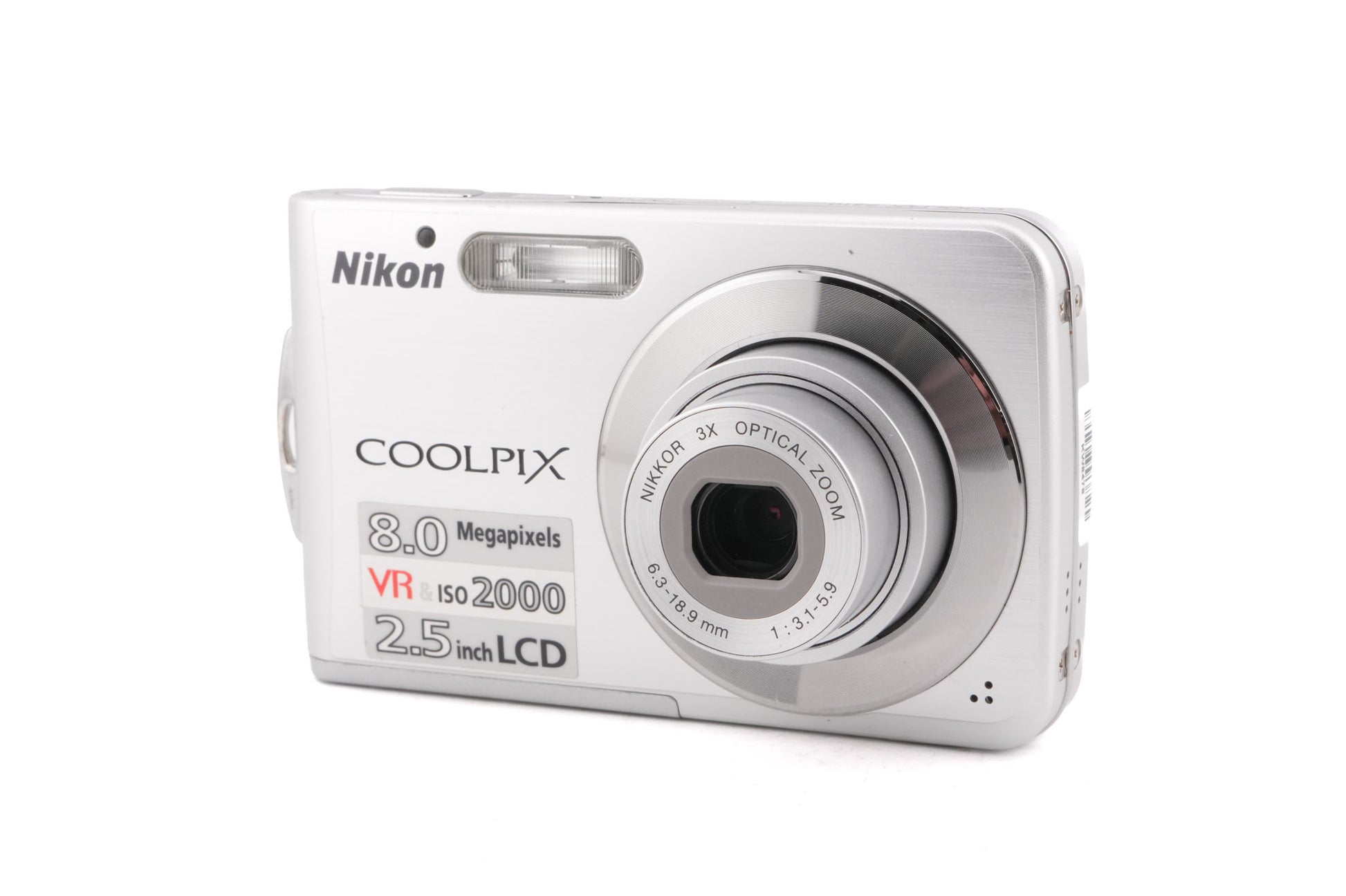 - Lens: Nikkor 6.3-18.9mm f3.1-5.9 3x Optical Zoom