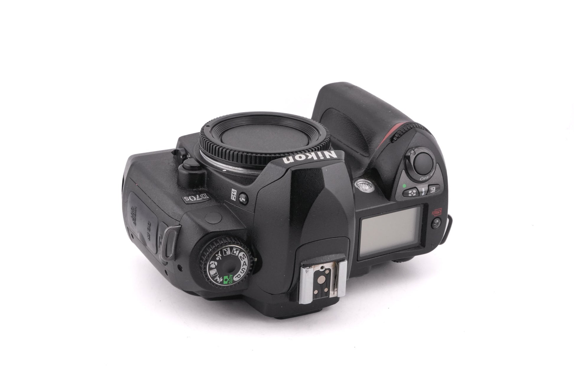 Autofocus APS-C F-mount digital SLR camera released by Nikon in 2004. It had a larger screen and better battery than the original D70. Metal/plastic body available in black.