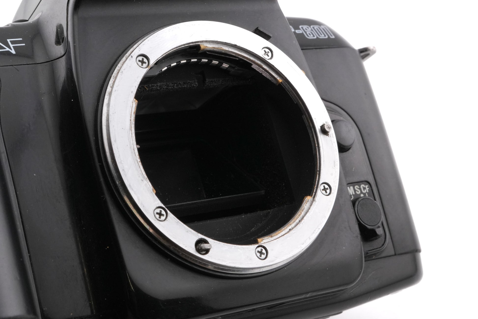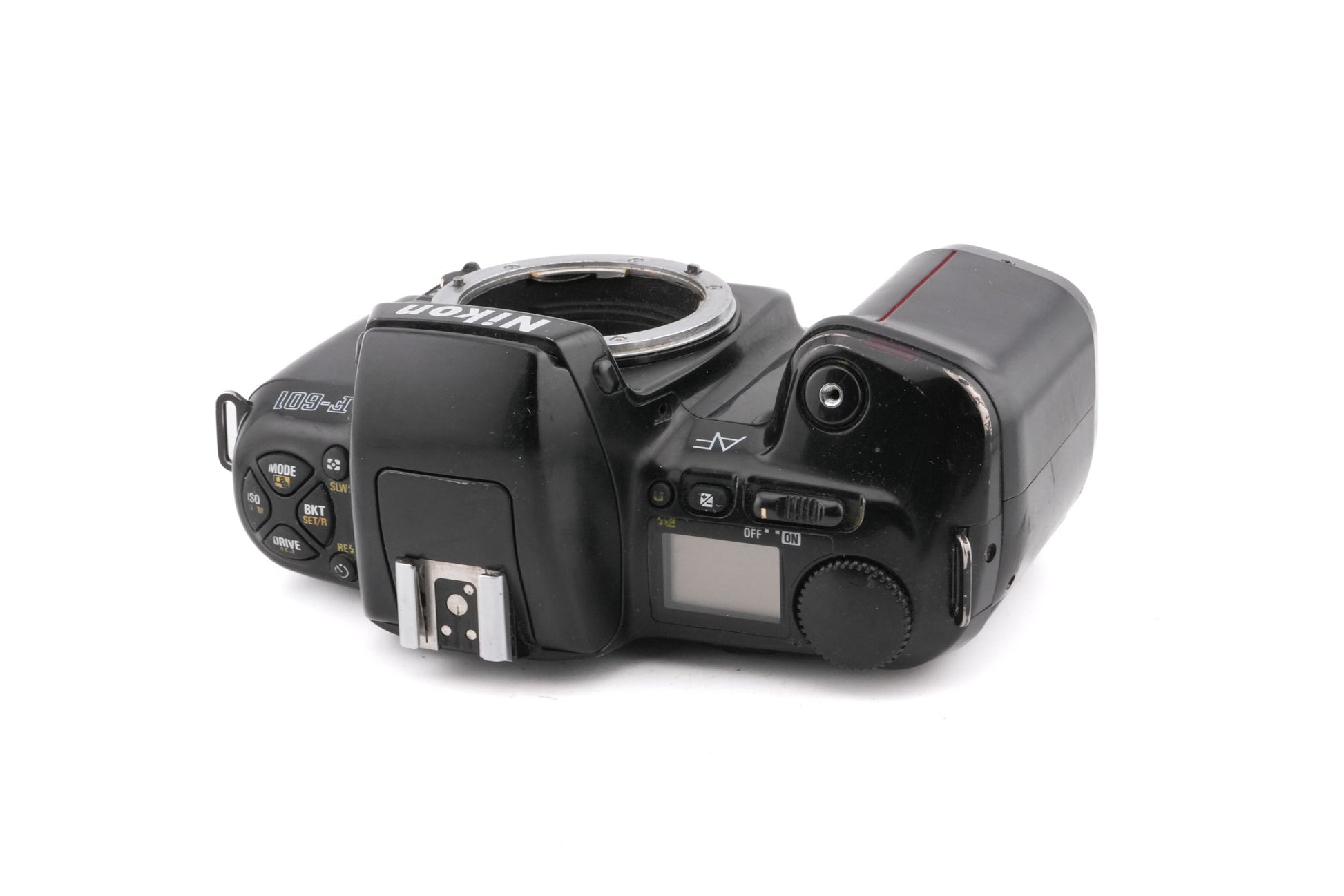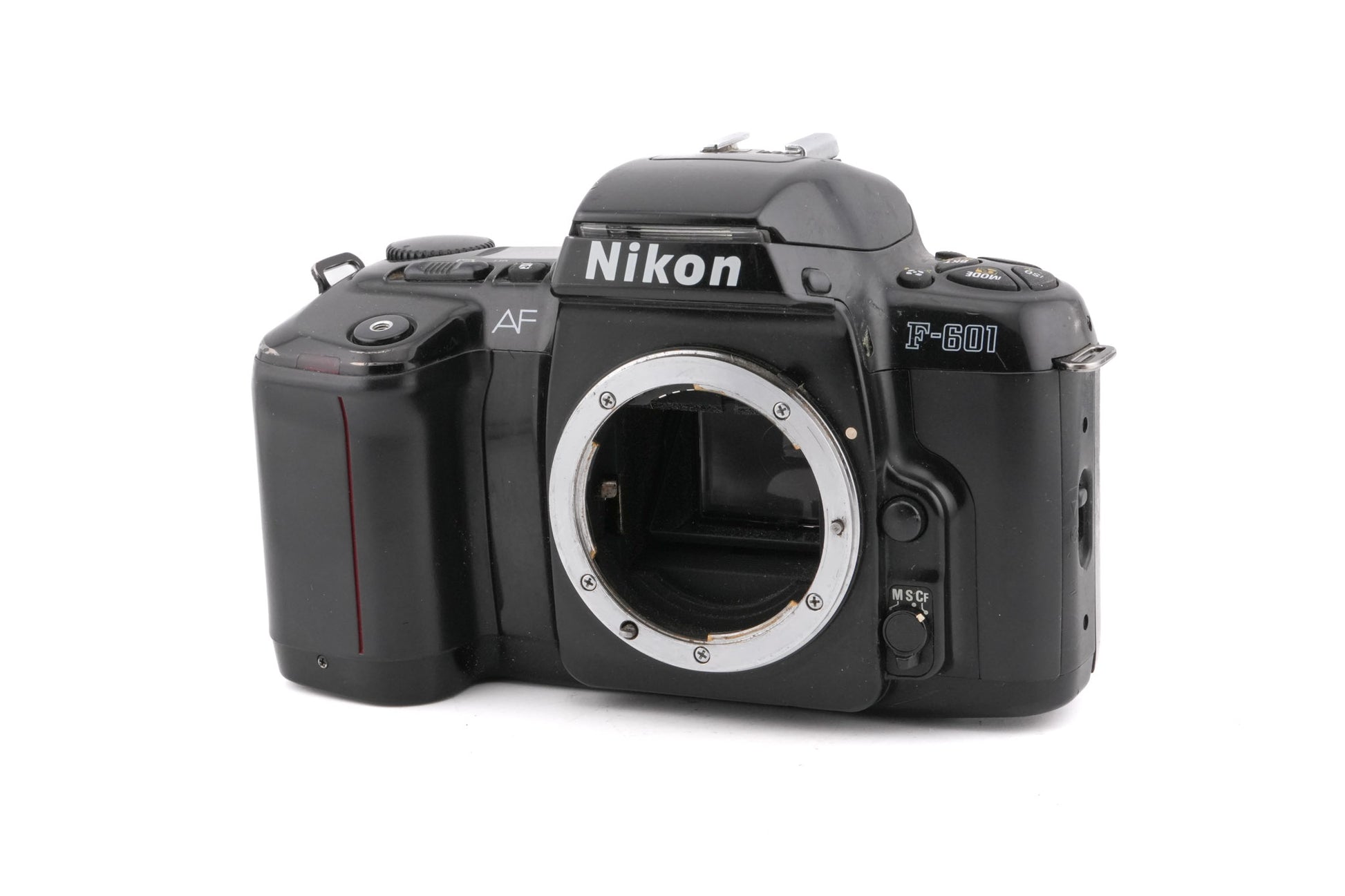 Autofocus F-mount 35mm SLR camera introduced by Nikon in 1990. Metal and plastic body available in black.