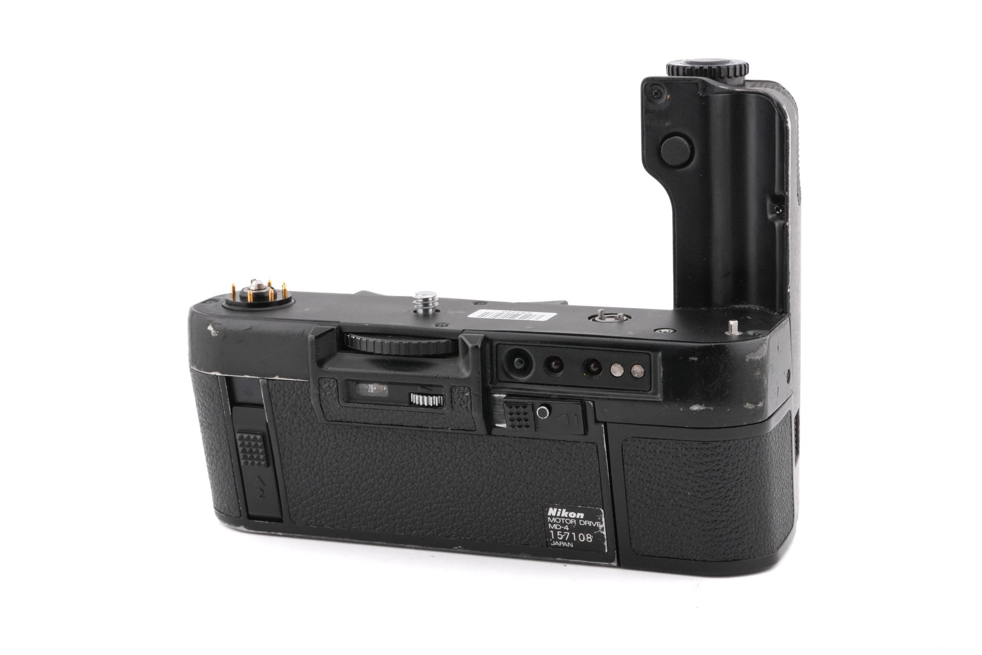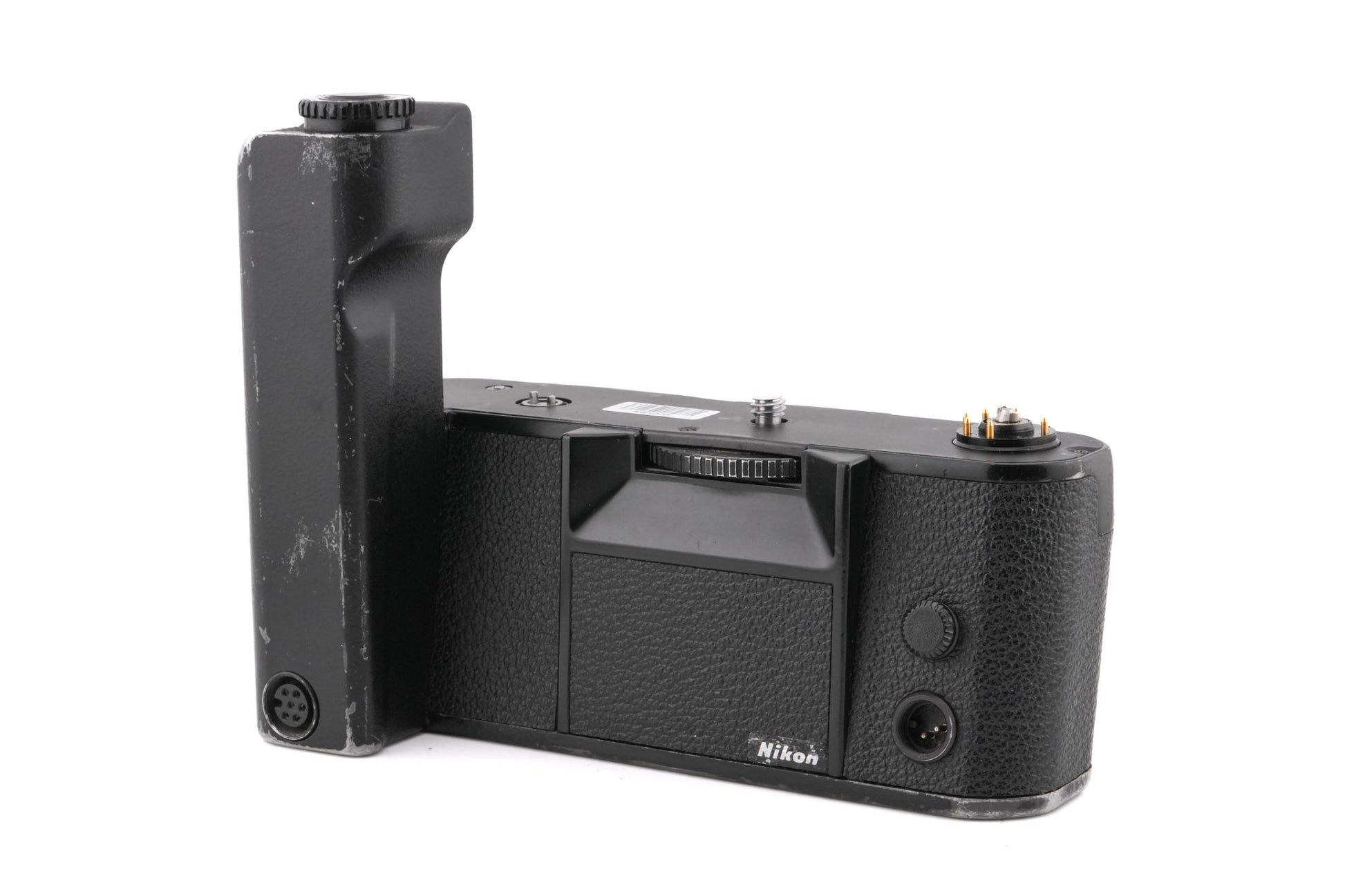 Motor drive made for the Nikon F3 35mm SLR camera introduced by Nikon. It is capable of up to 6 frames per second burst mode. Plastic and metal body available in black.