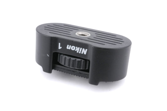Tripod adapter for the 1-mount made by Nikon. It raises the camera so larger lenses won't hit the tripod. Plastic body available in black.