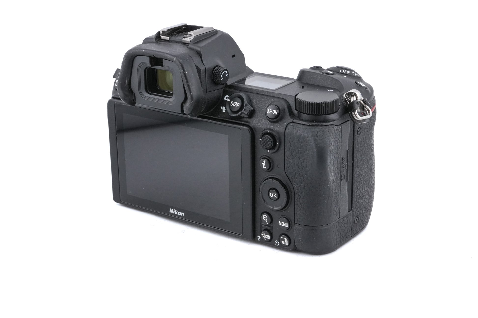 Autofocus Z mount digital mirrorless camera released by Nikon in 2020. It added a second memory card slot, allowing for CF and SD card support. It also improved autofocus speed and accuracy and increased the buffer for photos taken in quick bursts (compared to the original Z7). It can record 1080p video at 120 fps or 4K video at 60 fps. Magnesium alloy body available in black.