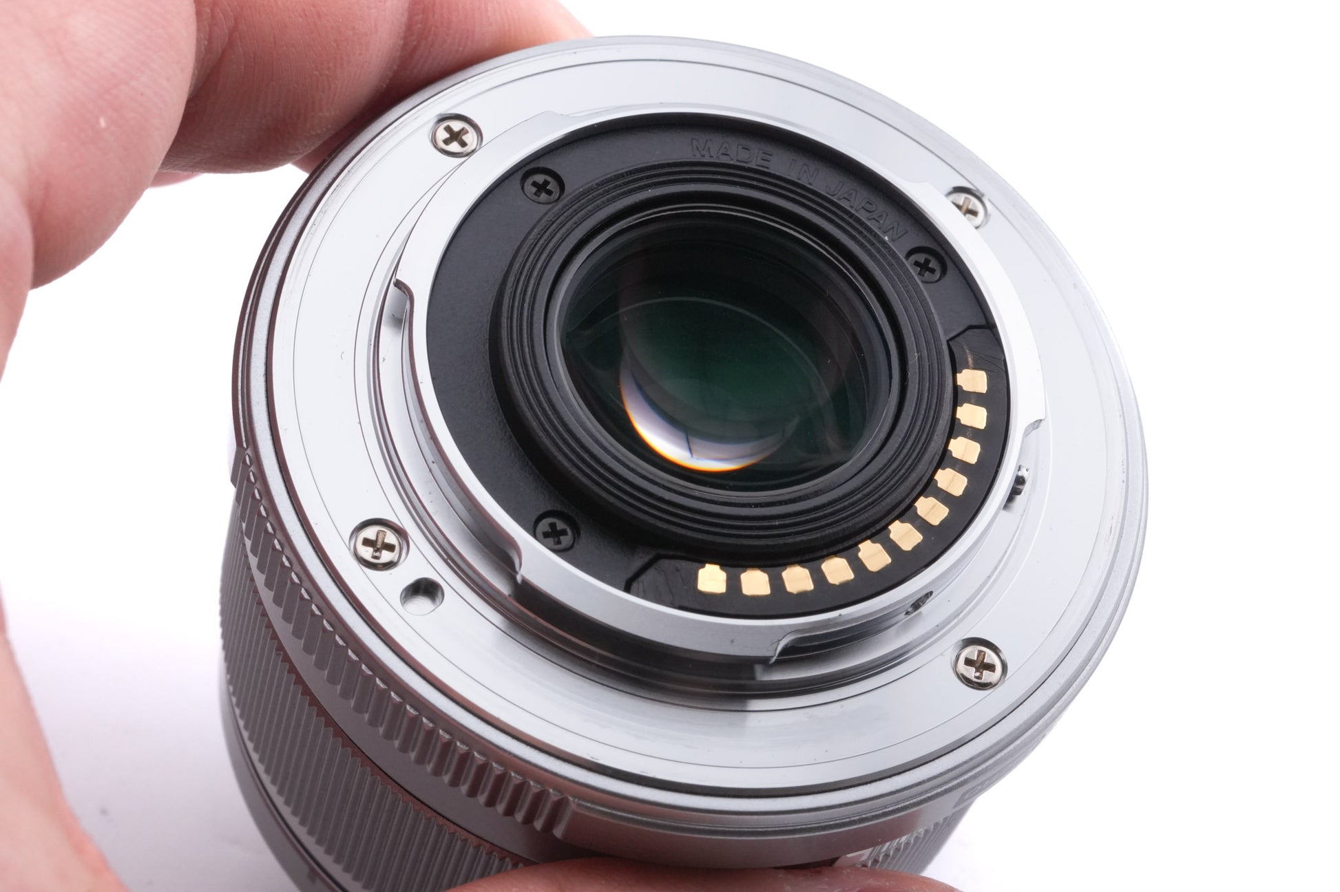 Autofocus normal lens made for Micro Four Thirds mount digital mirrorless cameras introduced by Olympus. It has a 50mm equivalent focal length. Metal and plastic body available in black and silver.