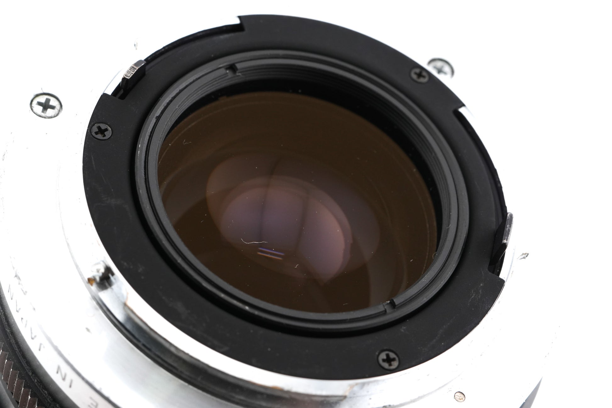 Manual focus telephoto zoom lens made for OM-mount 35mm SLRs by Olympus. It has a two-touch zoom system and a built-in lens hood. Metal body available in black.
