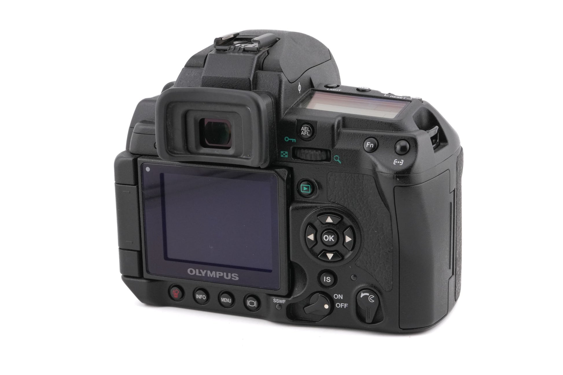 Autofocus Four Thirds mount digital SLR camera released by Olympus in 2007. It has built-in image stabilization, a 2.5" fully articulating LCD, and 11 autofocus points. The body is weather-sealed. Magnesium alloy body available in black.