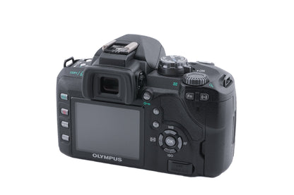 Autofocus Four Thirds mount DSLR camera introduced by Olympus in 2007. It has a 2.5" rear LCD. It uses CF memory card. Plastic body available in black.