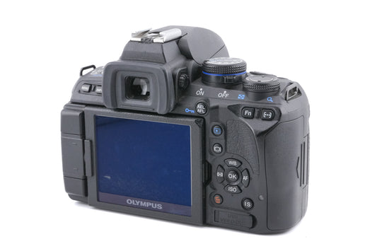 Autofocus Four Thirds DSLR camera made by Olympus introduced in 2009. It has 7 autofocus points and in-body image stabilization. It has a 2.7″ rear LCD and a built-in pop-up flash. Metal and plastic body available in black.