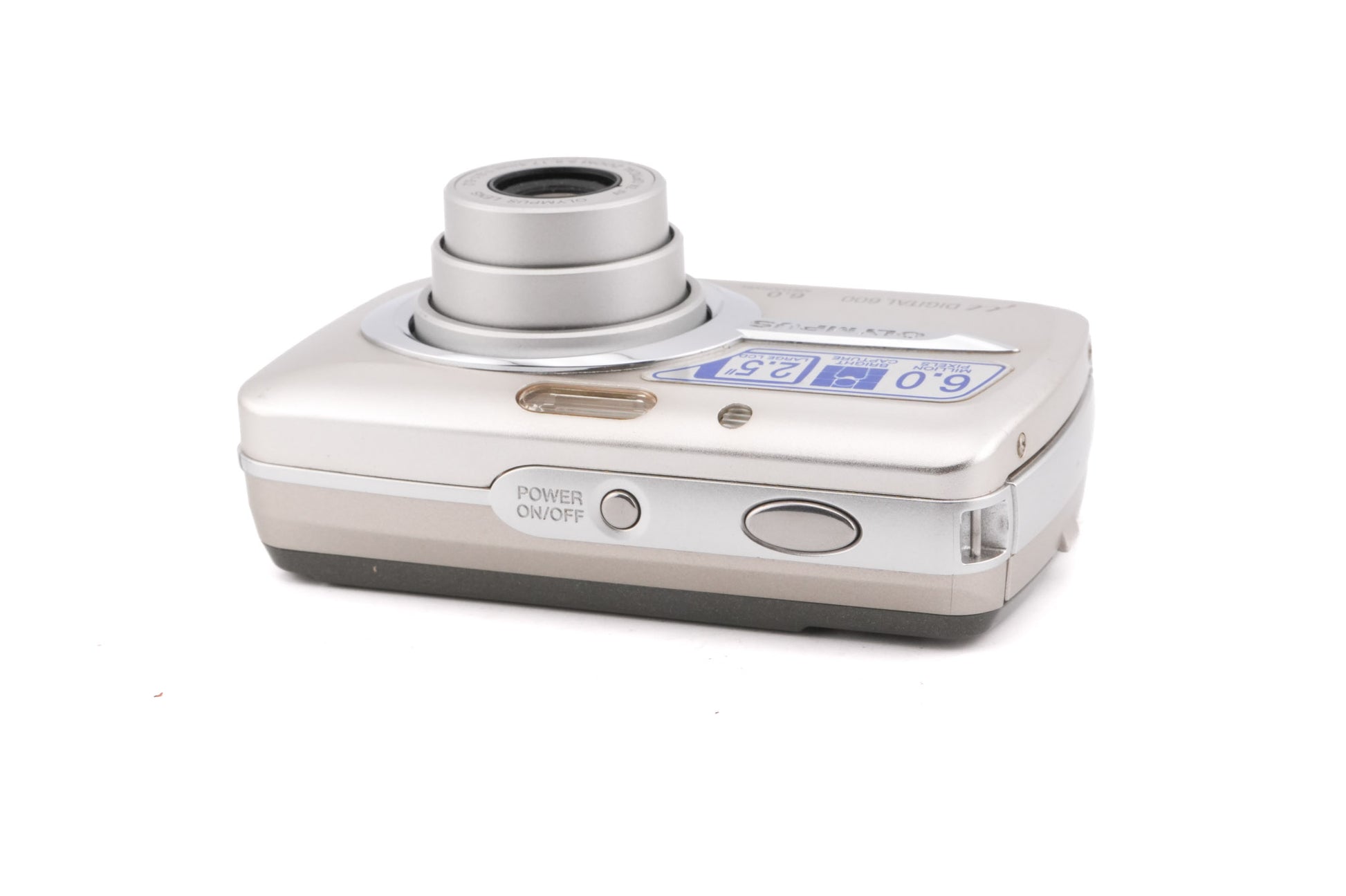 Autofocus point & shoot digital camera released by Olympus in 2005. It has a 35-105mm equivalent focal length, a 2.5″ rear LCD, and a built-in flash. It records 640 x 480 video at 15fps. It uses Olympus XD cards for storage. Metal and plastic body available in silver, blue, and red.