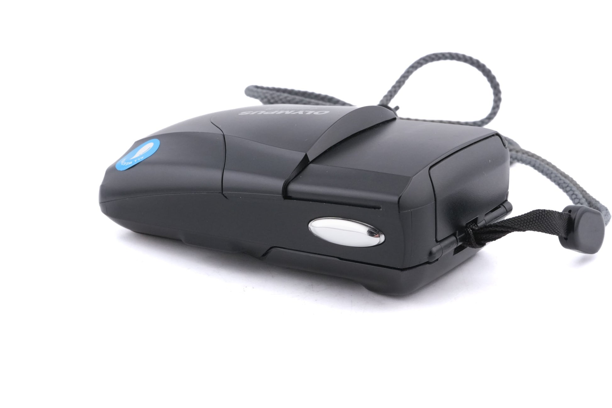 Autofocus 35mm point-and-shoot camera released by Olympus in 1997. It has a built-in flash with red-eye reduction and a weather-resistant body design. A version with a quartz date back is also available. Plastic body available in black and champagne.
