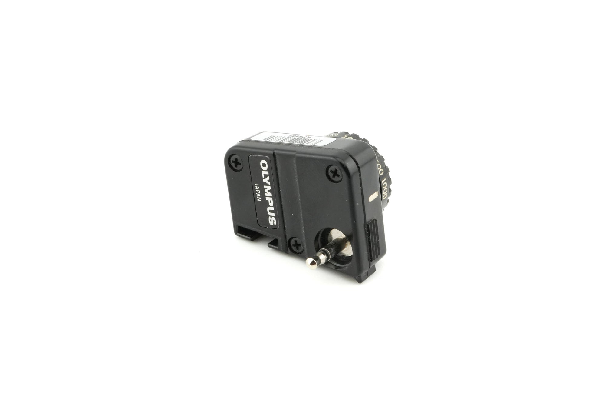 Manual adapter made by Olympus. It is used for manually selecting shutter speeds on the otherwise aperture priority Olympus OM10. The adapter plugs into the front of the camera, underneath the rewind knob. Just set the OM10 to "Manual" mode! Plastic body available in black.