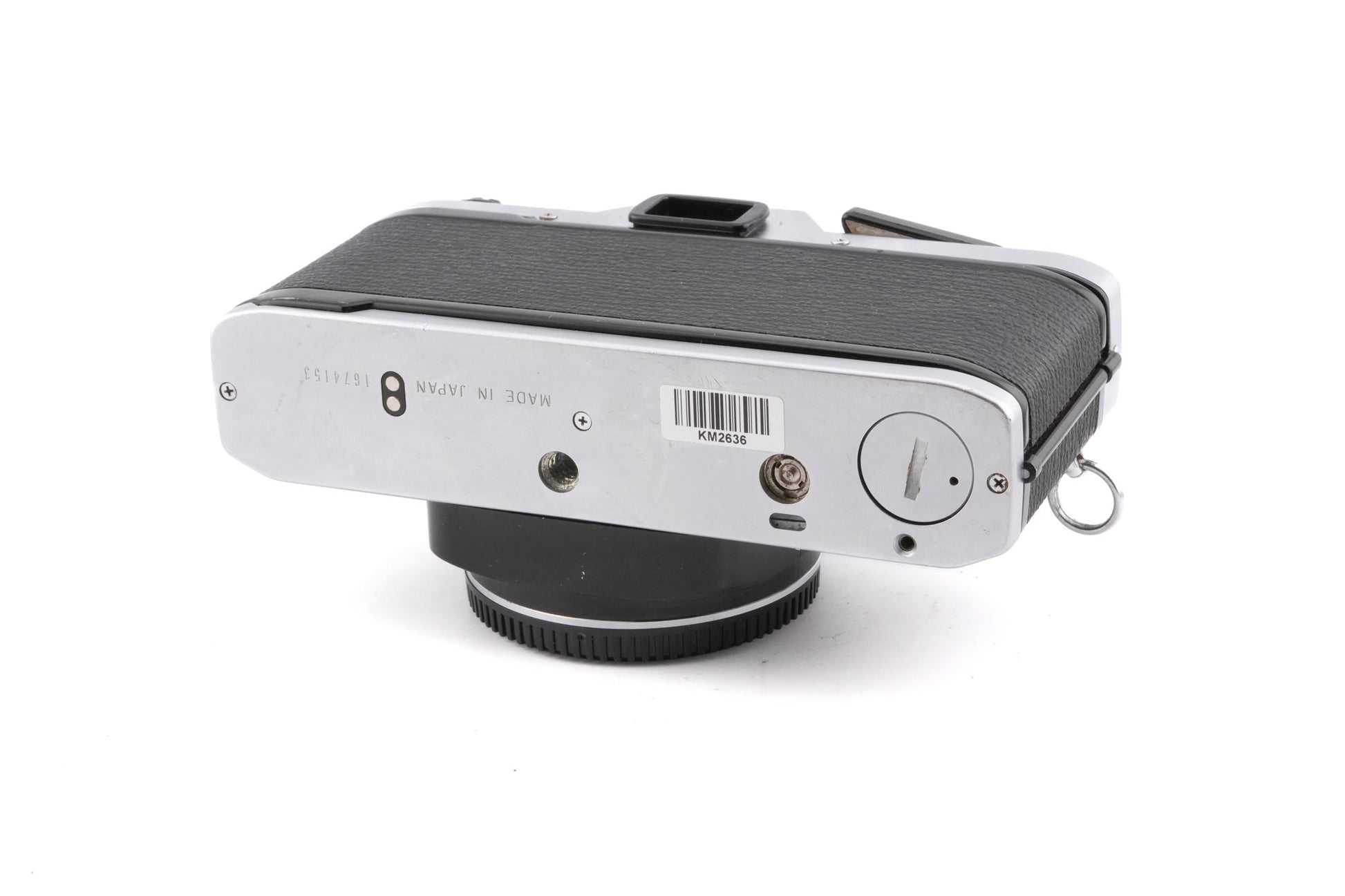 Manual focus OM-mount 35mm SLR released by Olympus in 1979. This was the first of Olympus' 2-digit OM series aimed at consumers instead of professionals. Fires only in aperture priority mode unless the optional manual adapter is attached. It has a self-timer, a hot shoe, and +/- 2 exposure compensation. Metal body available in silver.