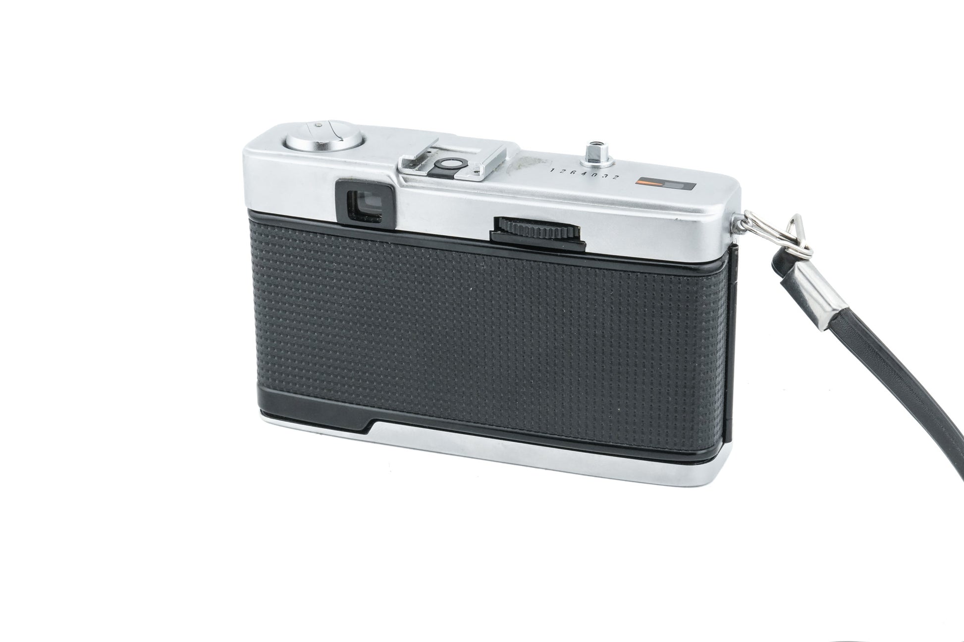 Zone focus 35mm point-and-shoot camera released by Olympus in 1967. The camera was aimed to be as simple as possible for tourists to take travel photos. It has only two shutter speeds and a selenium exposure cell to take fully programmed exposures. All the user has to do is focus. The aperture ring is only for flash use. Metal body available in silver.