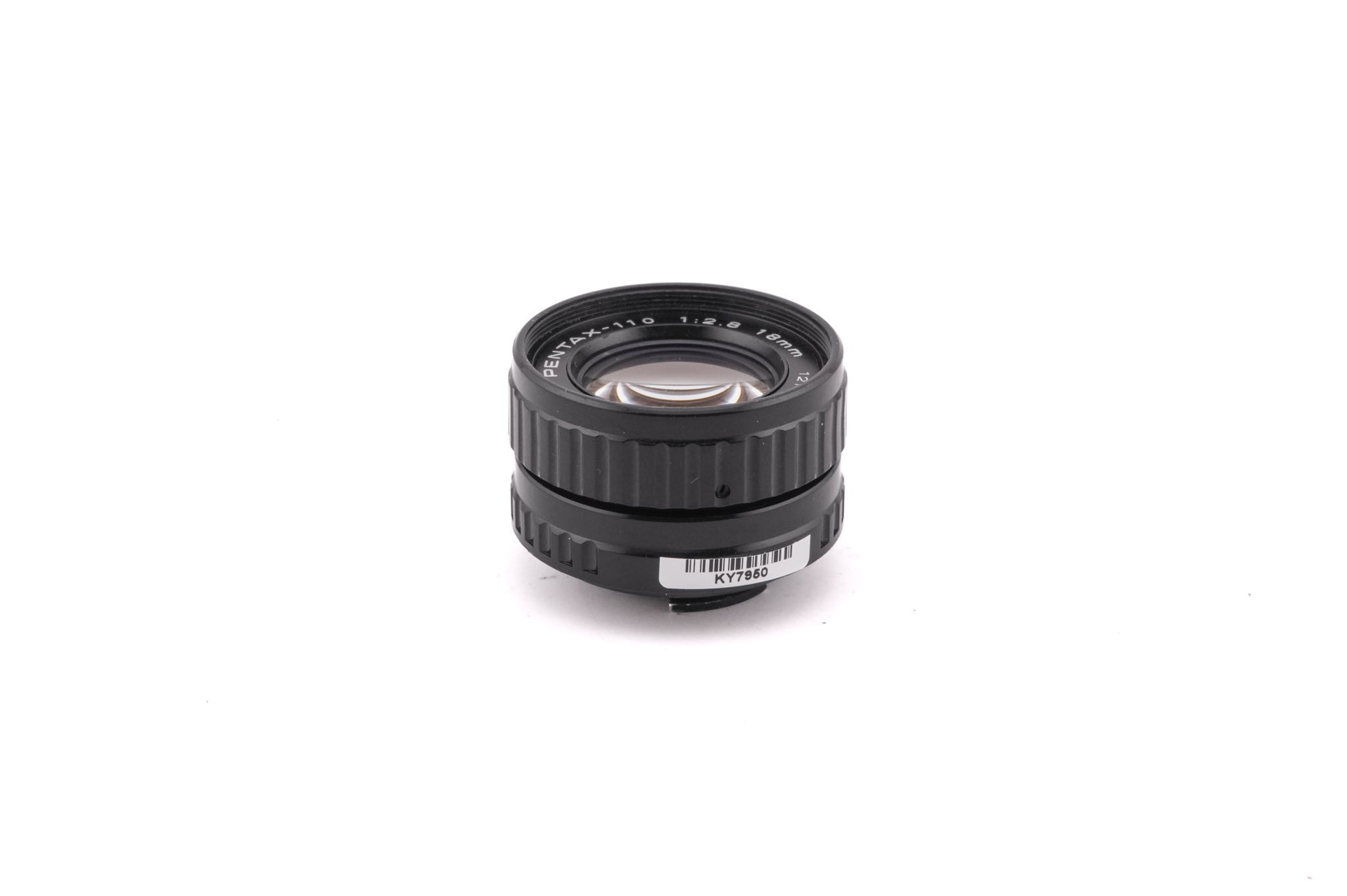 Manual focus wide normal lens made for Auto 110 SLRs by Pentax. It gives the equivalent field of view to a 36mm lens on full frame/35mm. Plastic body available in black.
