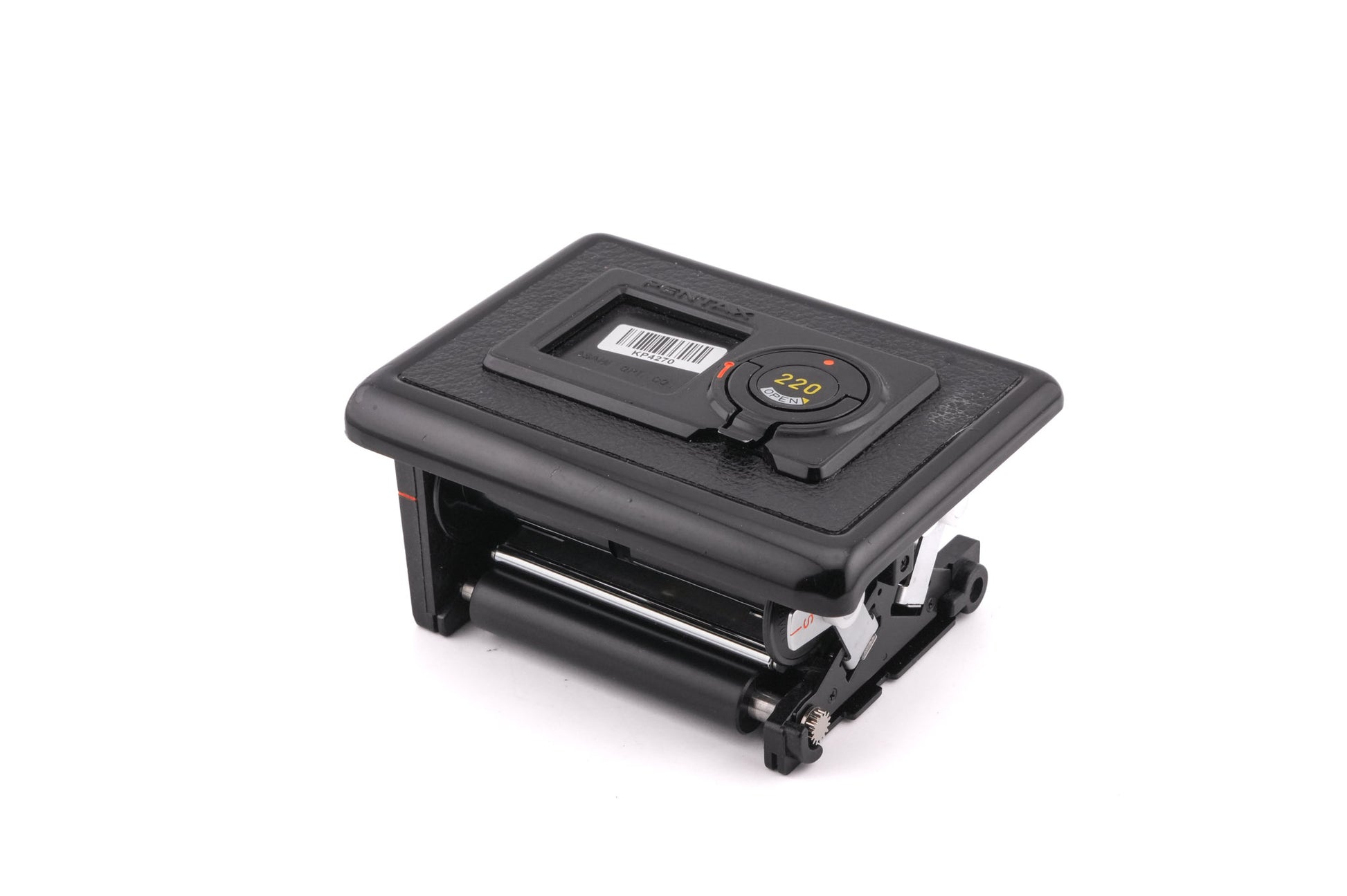Film insert for the Pentax 645 camera system introduced by Pentax. It uses 220 roll film and provides 30 exposures. Metal and plastic body available in black.