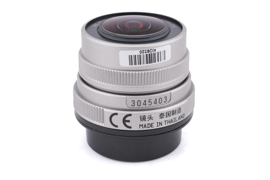 Autofocus fish eye lens made for Q-mount mirrorless cameras introduced by Pentax. It's referred to as 03 Fish-Eye in the Q system. Plastic body available in silver.