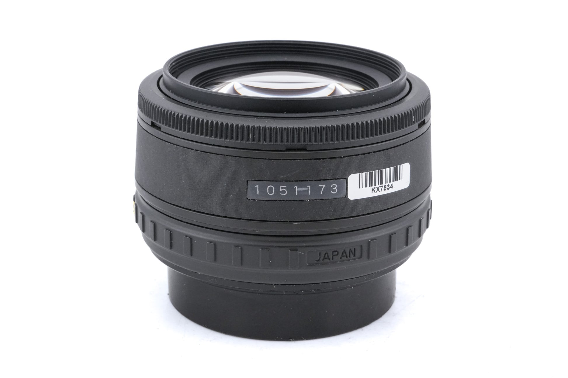 Autofocus normal lens made for K mount SLRs by Pentax. Plastic body available in gray.