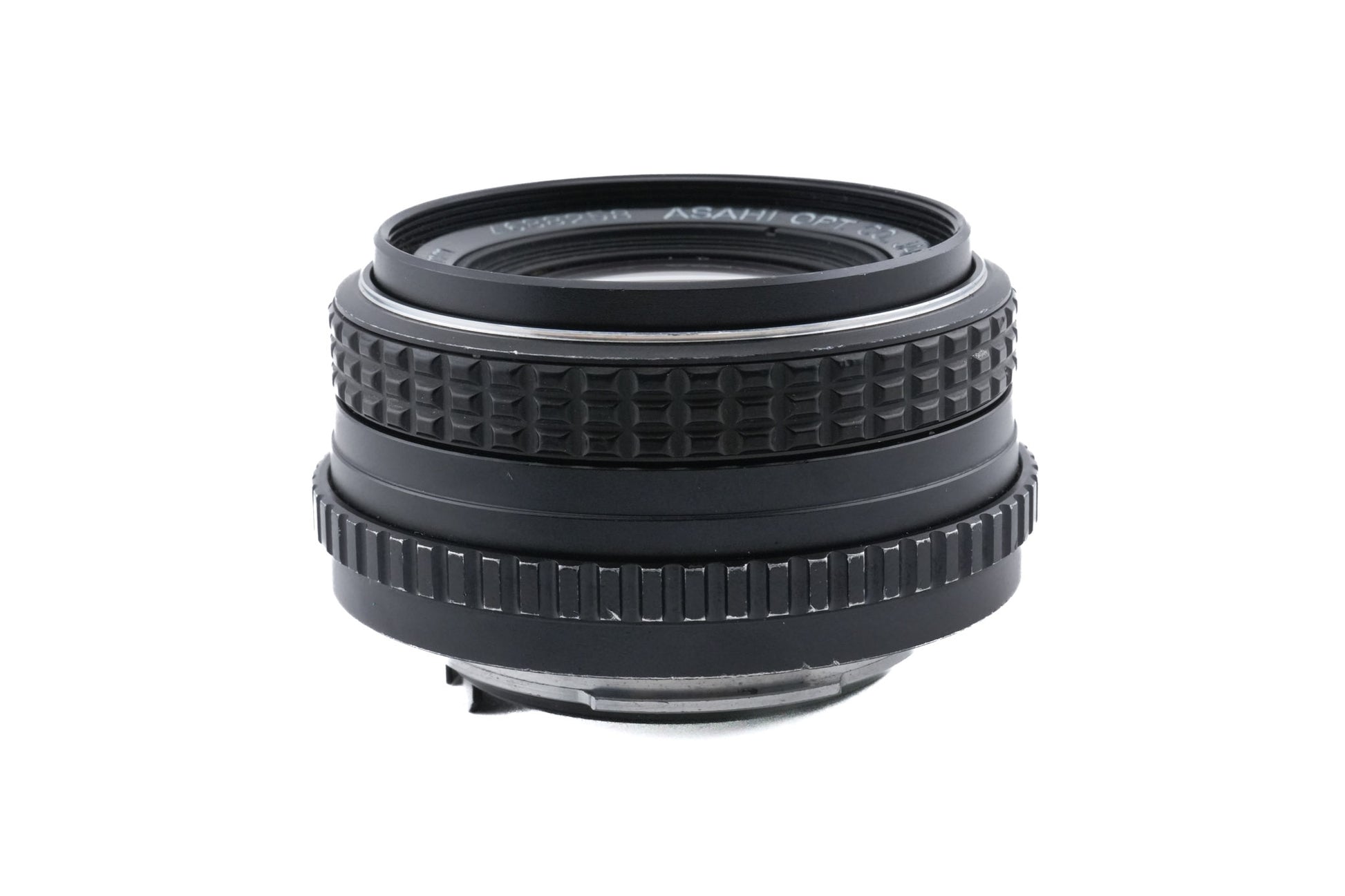 Manual focus normal lens made for K-mount 35mm SLR cameras by Pentax. It does not work with the automatic modes of later Pentax models. Plastic/metal body available in black.