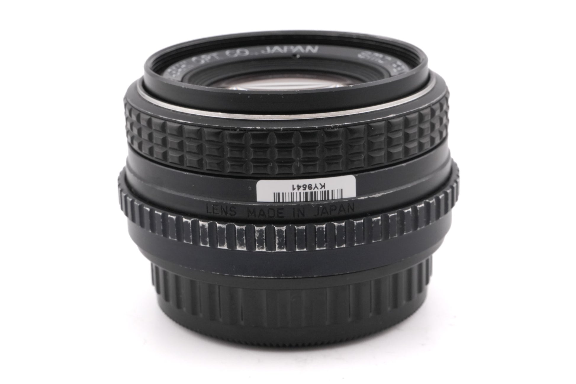 Manual focus normal lens made for K-mount 35mm SLR cameras by Pentax. It does not work with the automatic modes of later Pentax models. Plastic/metal body available in black.