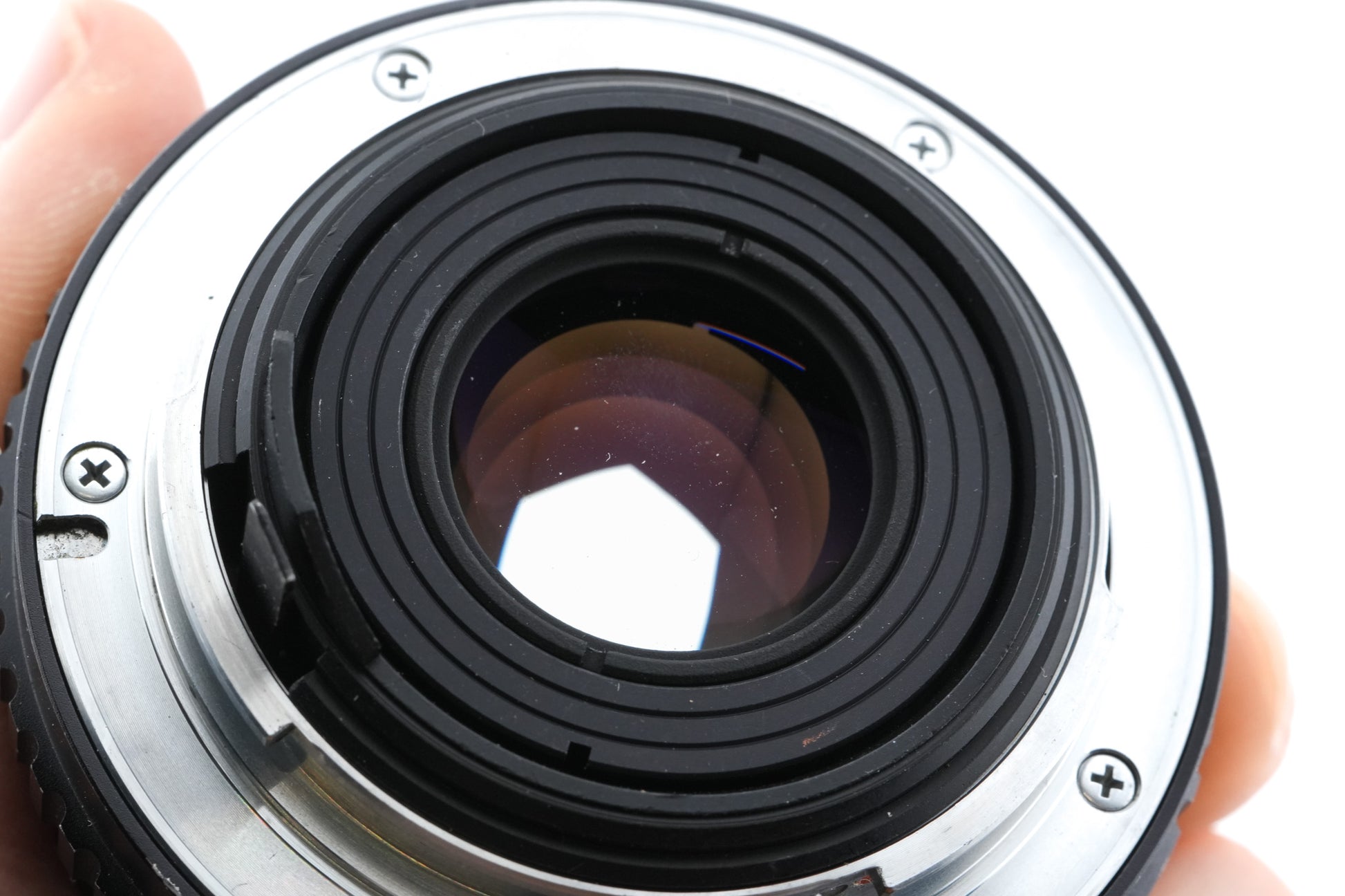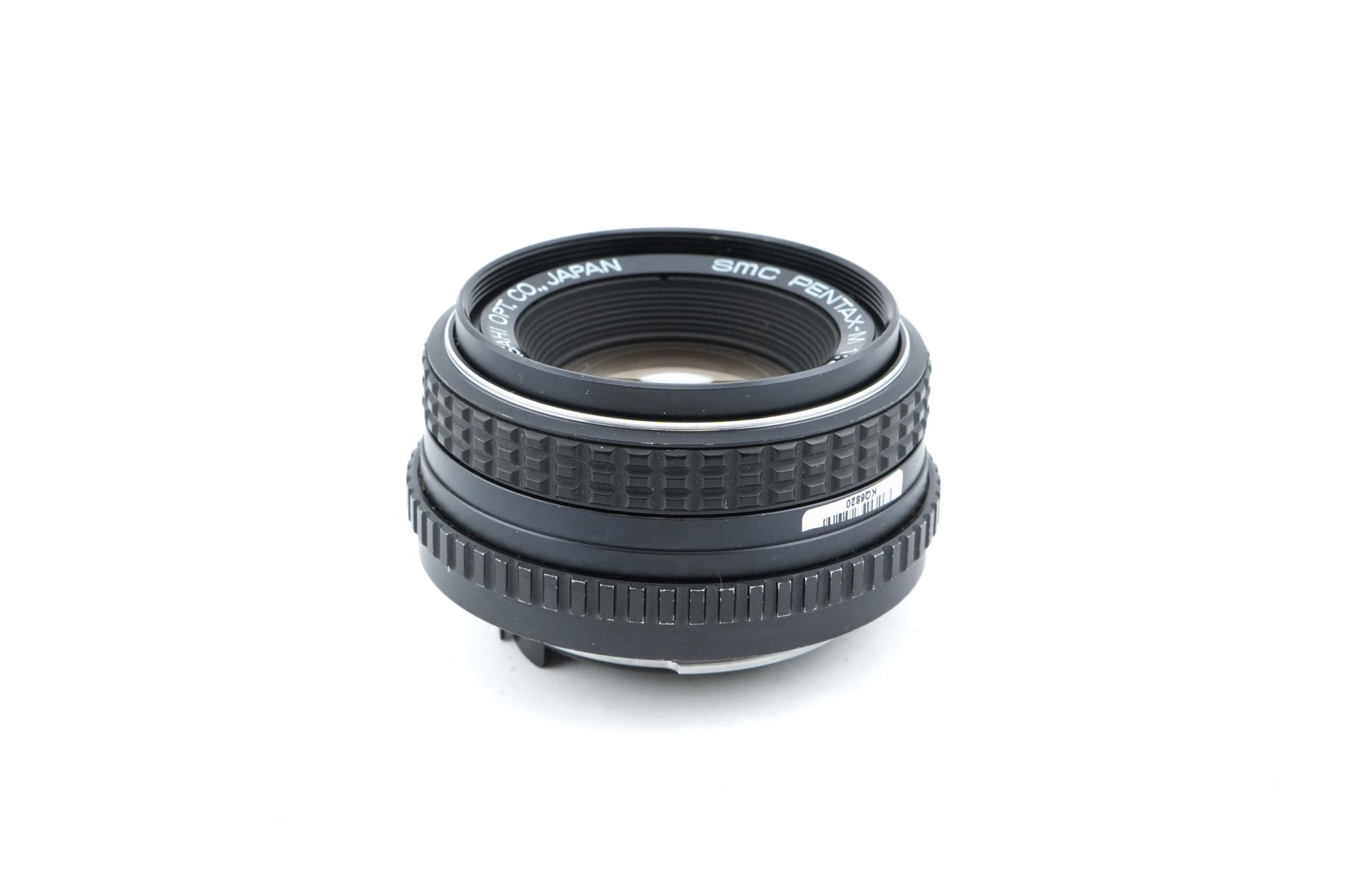 Manual focus normal lens made for K-mount 35mm SLR cameras introduced by Pentax. Early models were all-metal, but after the release of the Pentax-A line, some plastic parts were used. Metal and plastic body available in black.