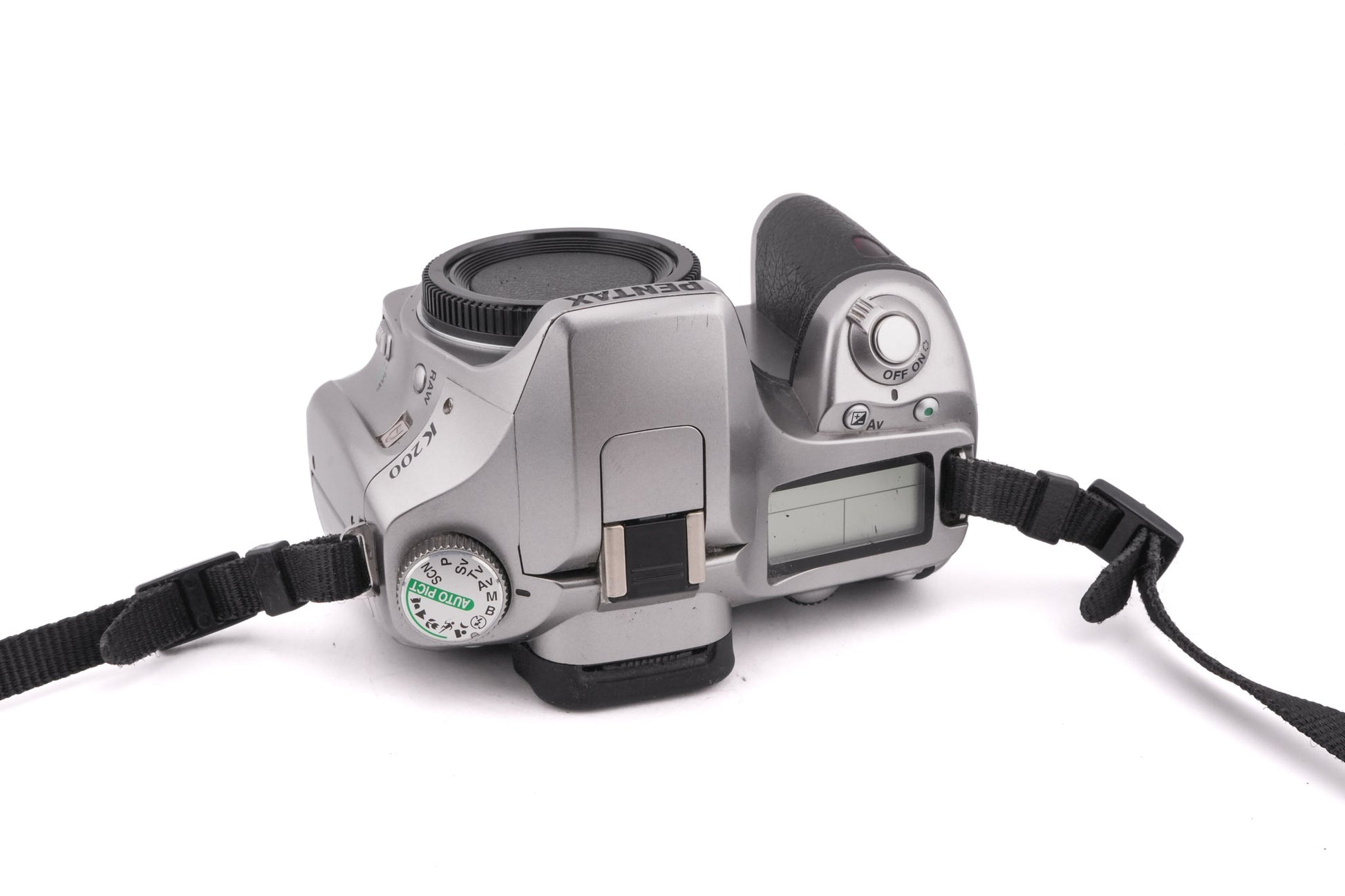 Autofocus K-mount APS-C DSLR camera released by Pentax in 2008. It has a 2.7" LCD screen and a built-in pop-up flash. Plastic body available in black and white.