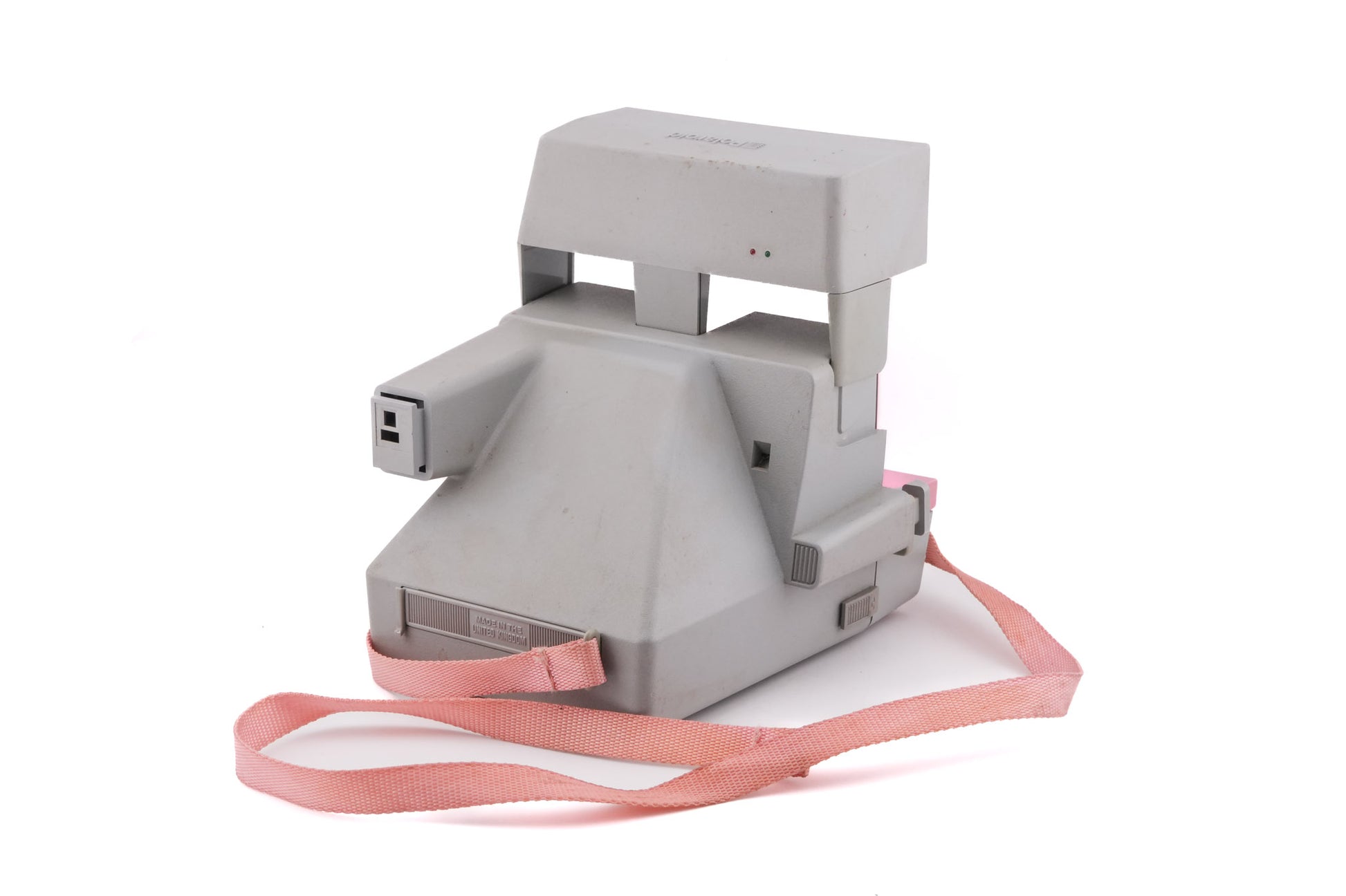 Fixed focus instant camera made by Polaroid. It has a built-in flash and exposure compensation. It uses 600 film. Plastic body available in a grey, pink, and turquoise color scheme!