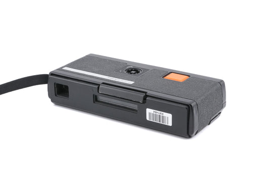 Fixed focus 110 compact camera made by Prinz. Plastic body available in black.