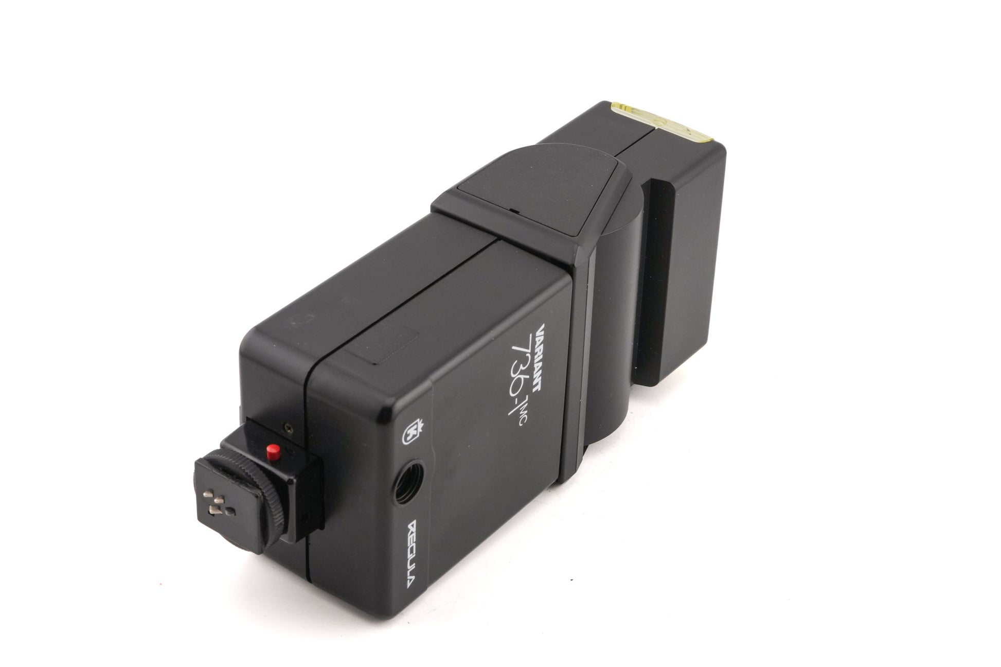 Flash made for multiple different brands introduced by Regula. It has a switch for Nikon, Min./Leica R4, N, Pentax, and Canon. Plastic body available in black.