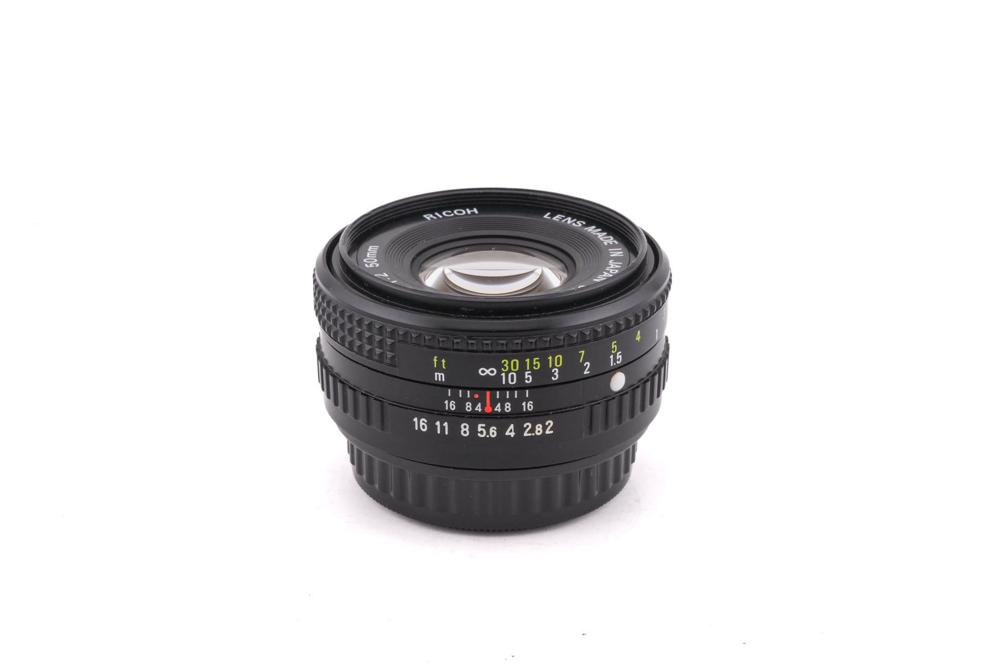 Manual focus normal lens made for K-mount 35mm SLR cameras introduced by Ricoh. Metal and plastic body available in black.