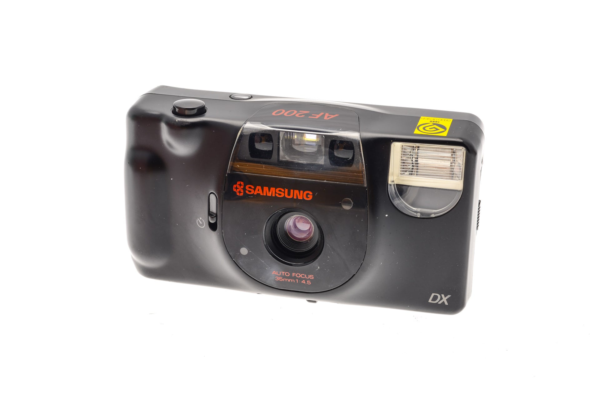 Autofocus point & shoot 35mm camera released by Samsung. Plastic body available in black.