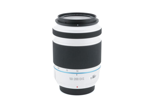 Autofocus compact APS-C mirrorless camera released by Samsung in 2012. Plastic body in white and black.