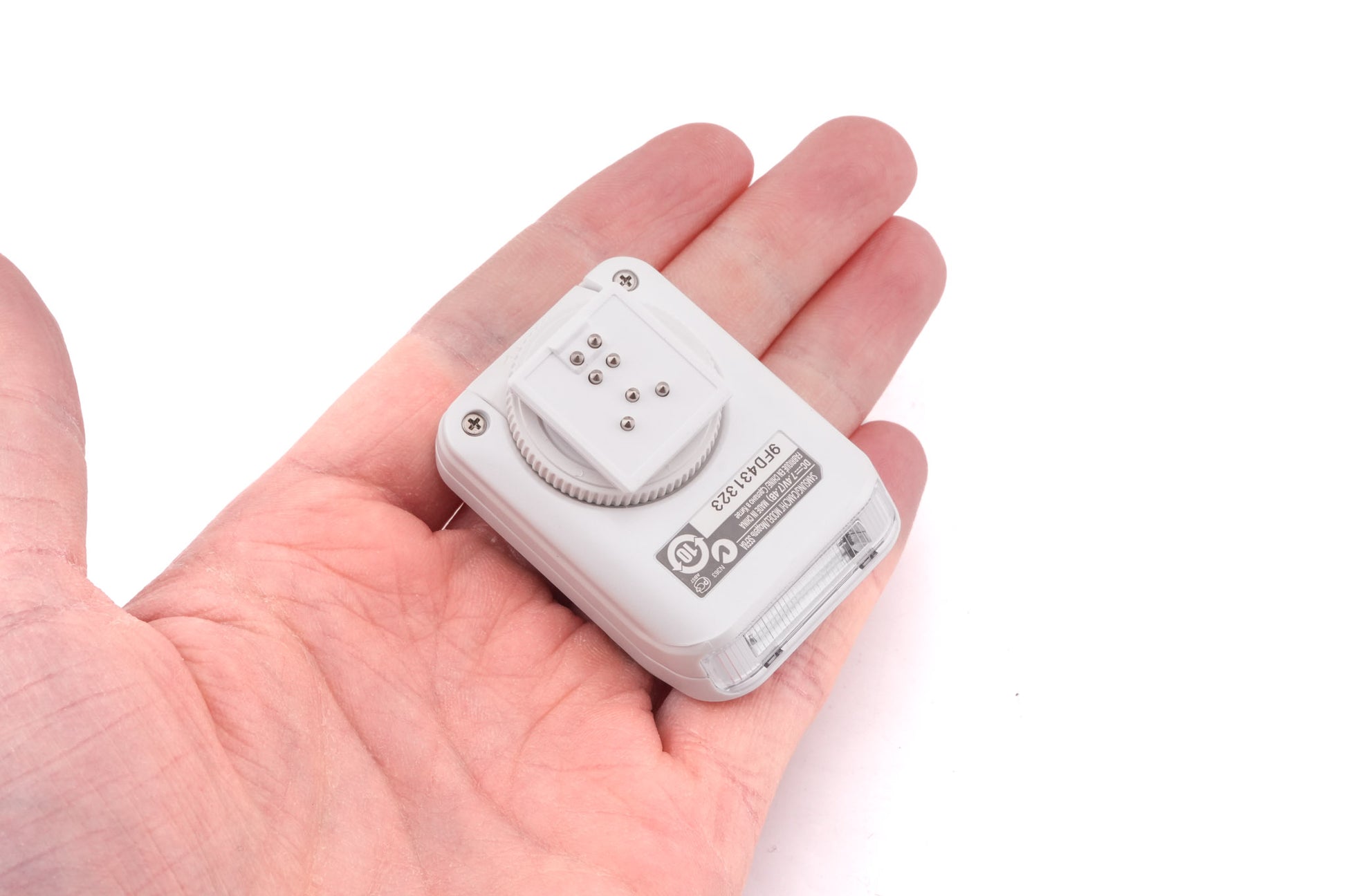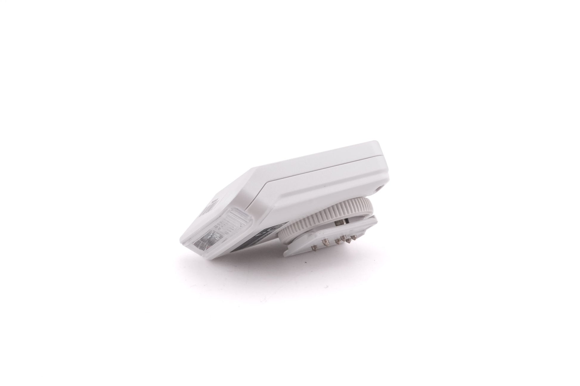 Hotshoe-mounted flash made by Samsung. Plastic body available in black, white, and silver.