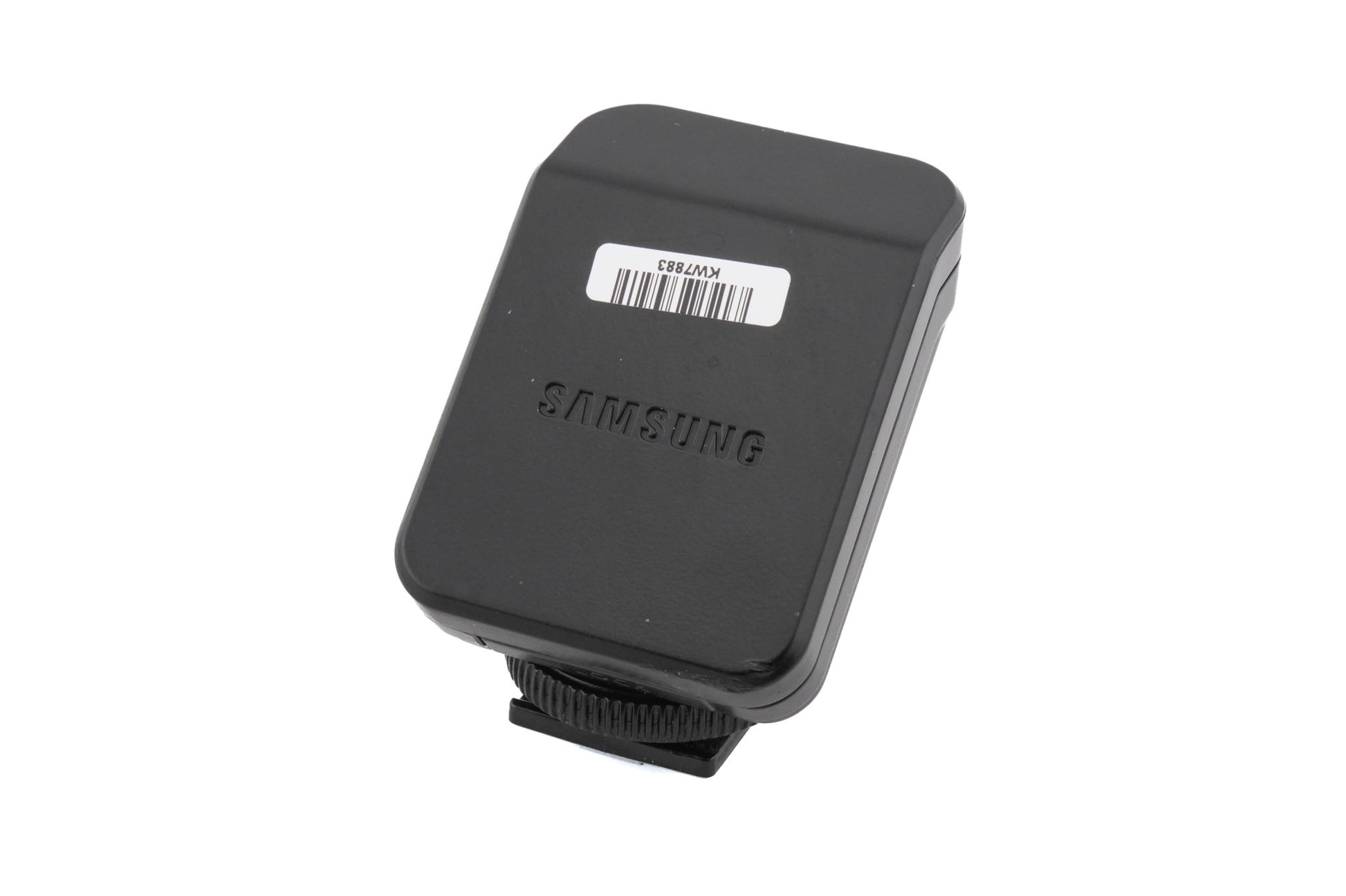 Hotshoe-mounted flash made by Samsung. Plastic body available in black, white, and silver.