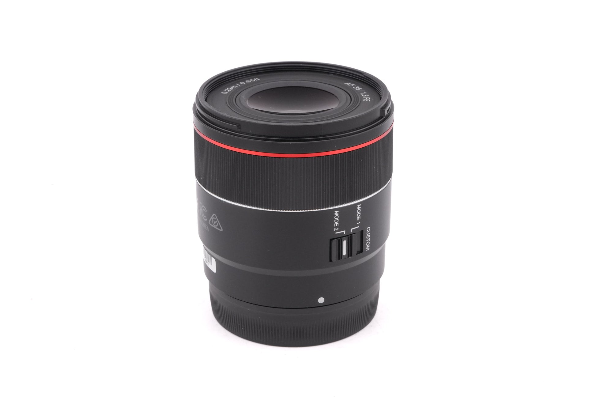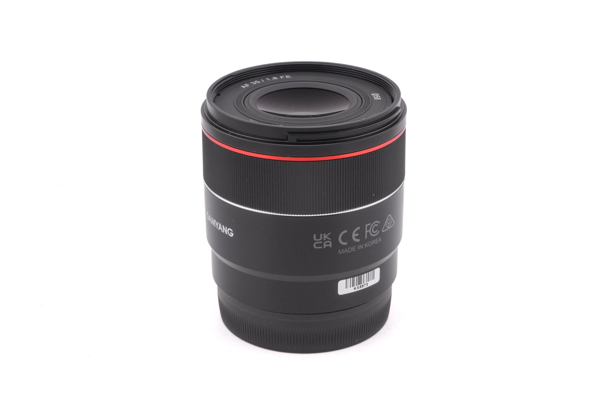 Autofocus normal lens made for FE-mount mirrorless cameras by Samyang. Metal and plastic body available in black.