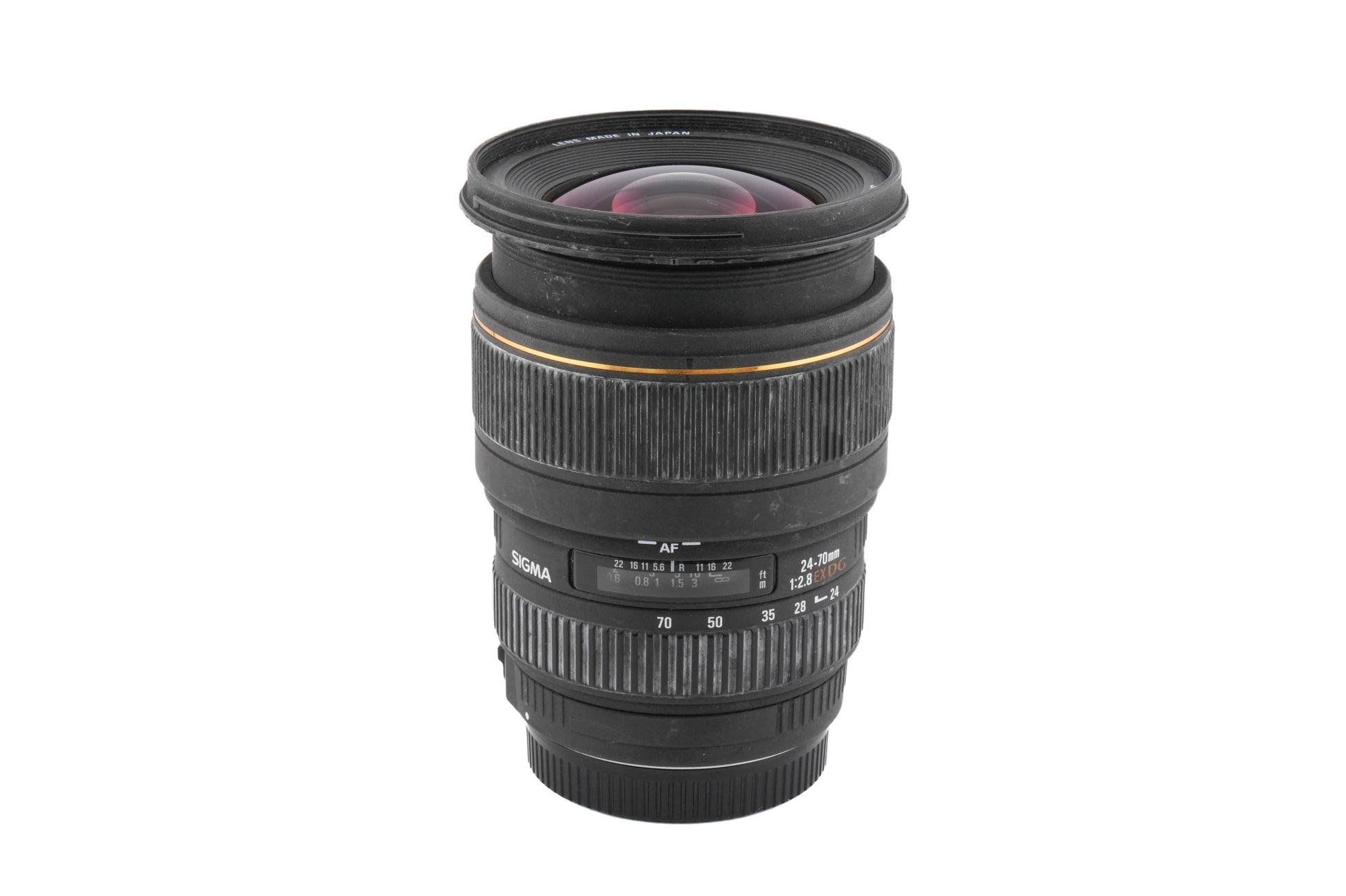 - Lens: Sigma 24-70mm f2.8 EX DG (14 elements, 12 groups)