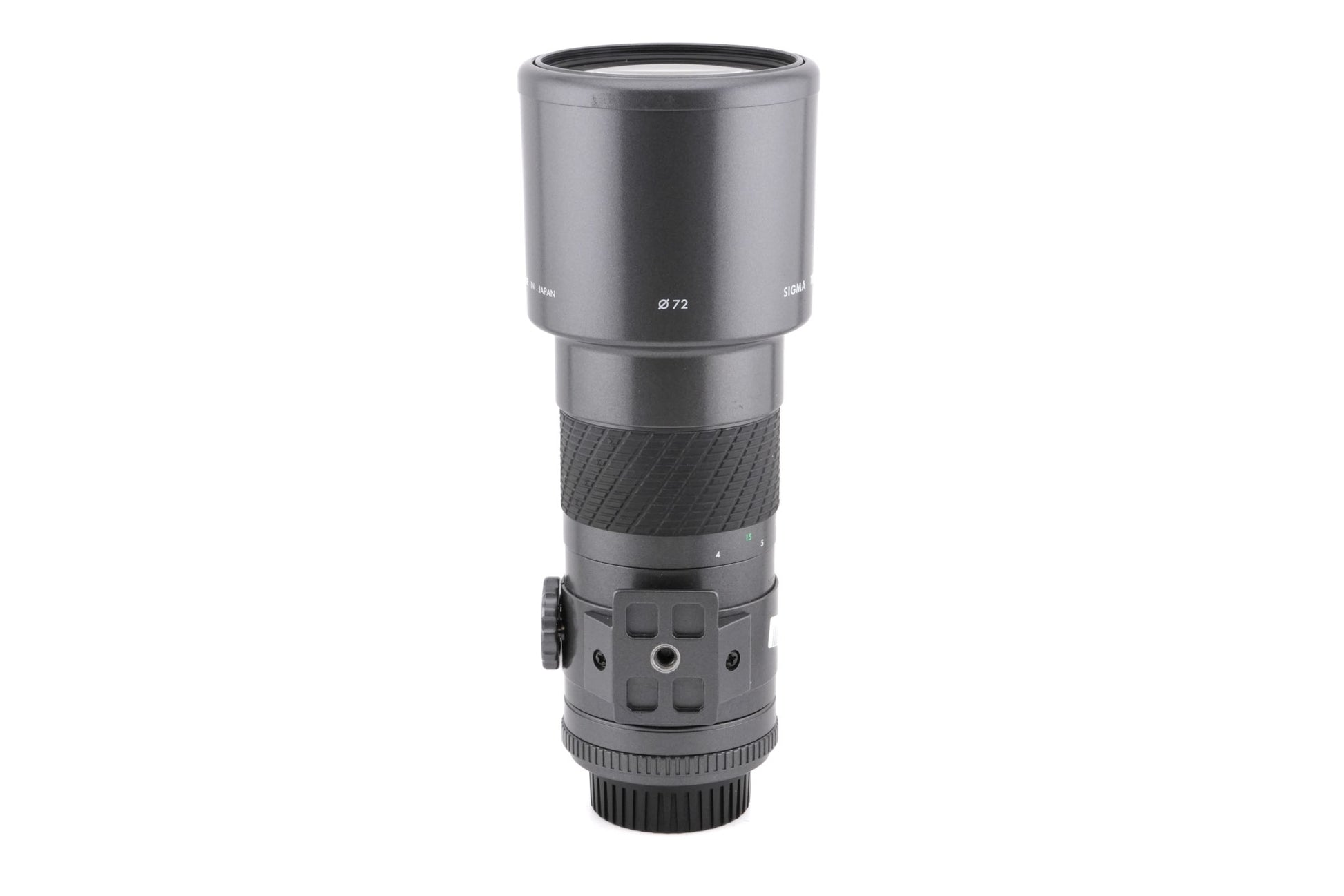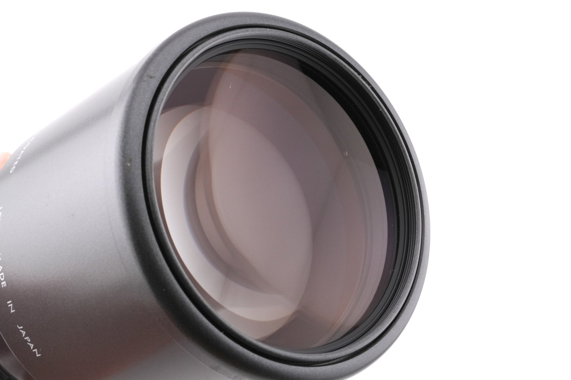 Manual focus telephoto lens made for MD-mount 35mm SLR cameras introduced by Sigma. It is multicoated and has a built-in lens hood and a tripod collar. Metal and plastic body available in grey.