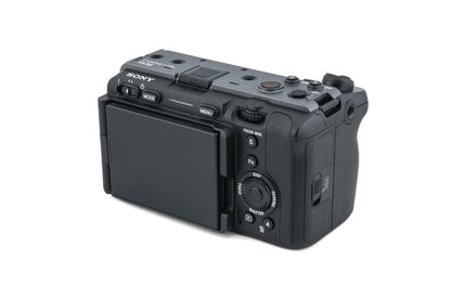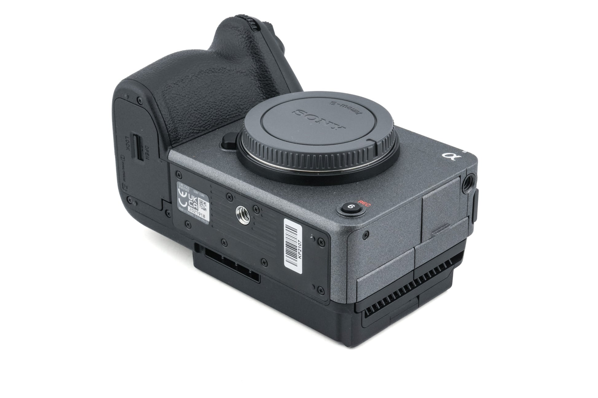 Autofocus APS-C E-mount digital mirrorless camera released by Sony in 2022. It's a cinema-focused body with video-related controls, extra mounting points for accessories, and other features. It does not have a mechanical shutter inside, only an electronic one. It records up to 3840 x 2160, 120p, H.265 video, has 5.5 stops of built-in 5-axis sensor-shift image stabilization, and a 3" articulating rear LCD. Metal and plastic body available in dark gray.