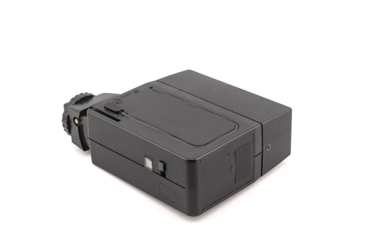 Compact flash made by Sunpak. It has a single strength, built-in PC sync cable, and a distance scale calculator on the side. The base rotates to 3 different positions and has a single contact pin.