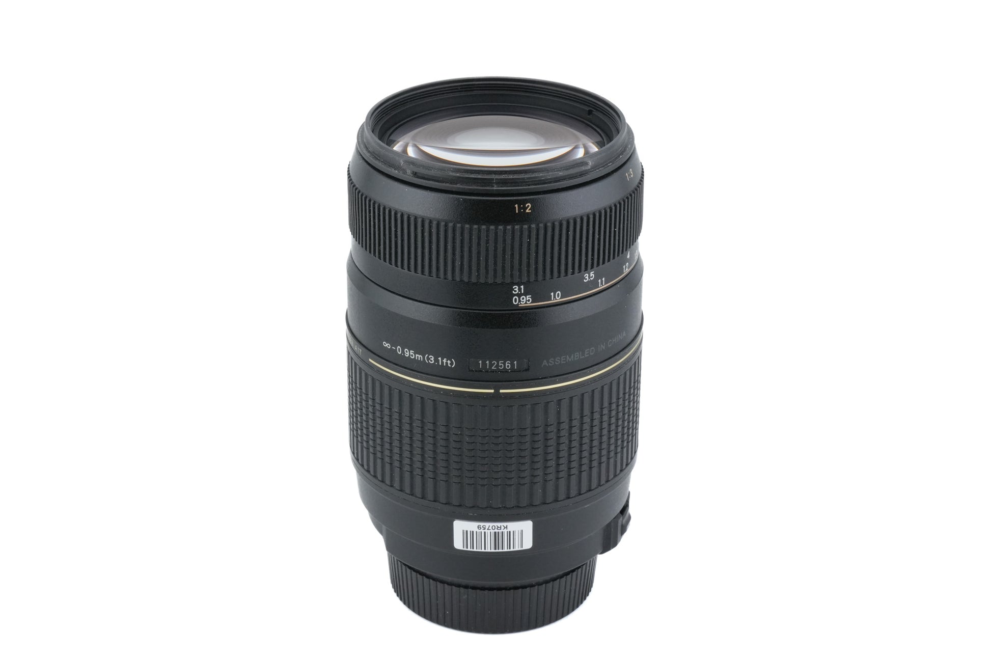 Autofocus telephoto zoom lens made for F-mount (D)SLR cameras introduced by Tamron. It is capable of 1:2 macro reproduction at 300mm. The lens requires a body capable of controlling both focus and aperture electronically. Plastic body available in black.