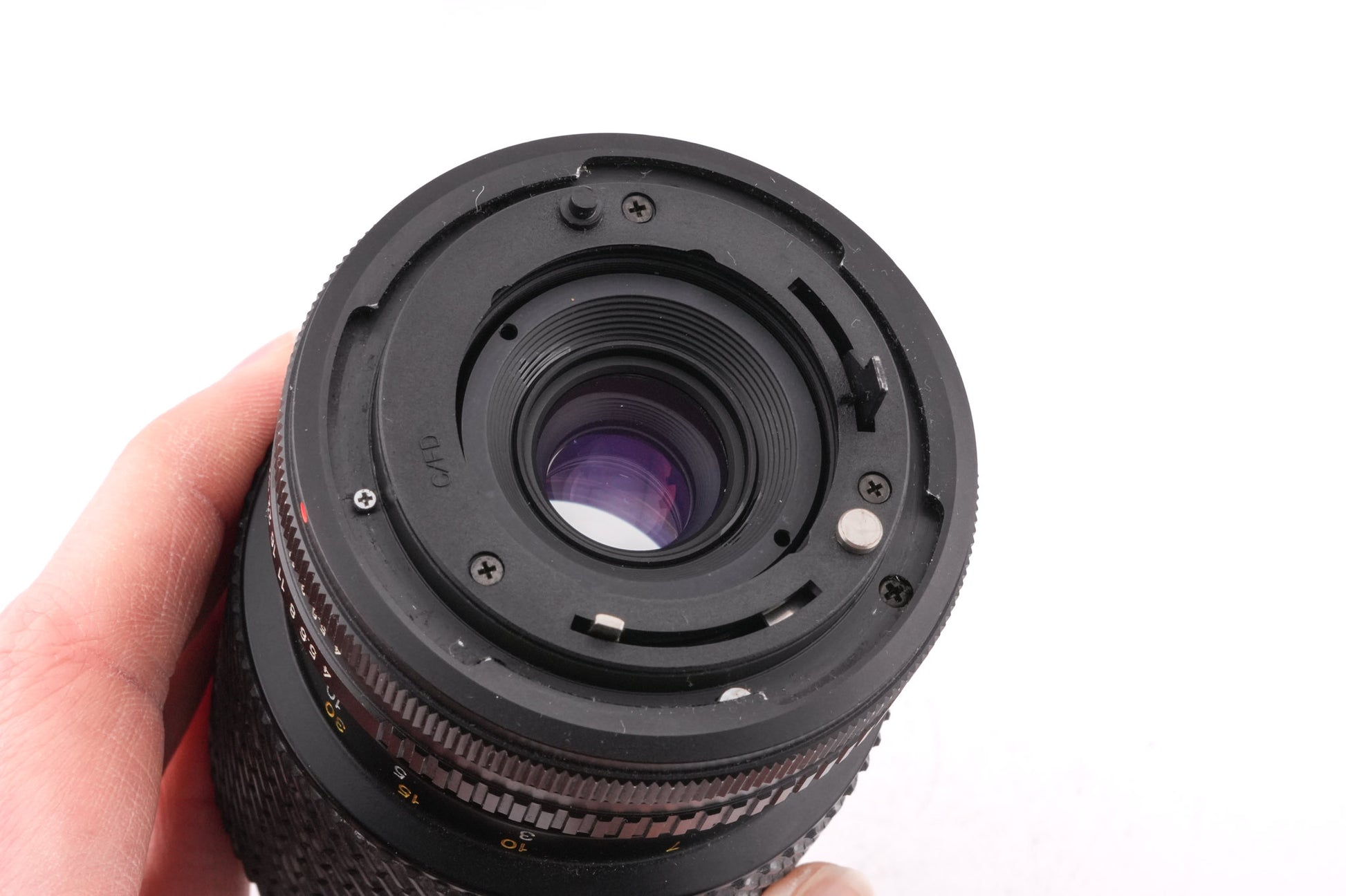 Manual focus telephoto push/pull zoom lens made for FD-mount 35mm SLRs by Tokina. Metal body available in black.