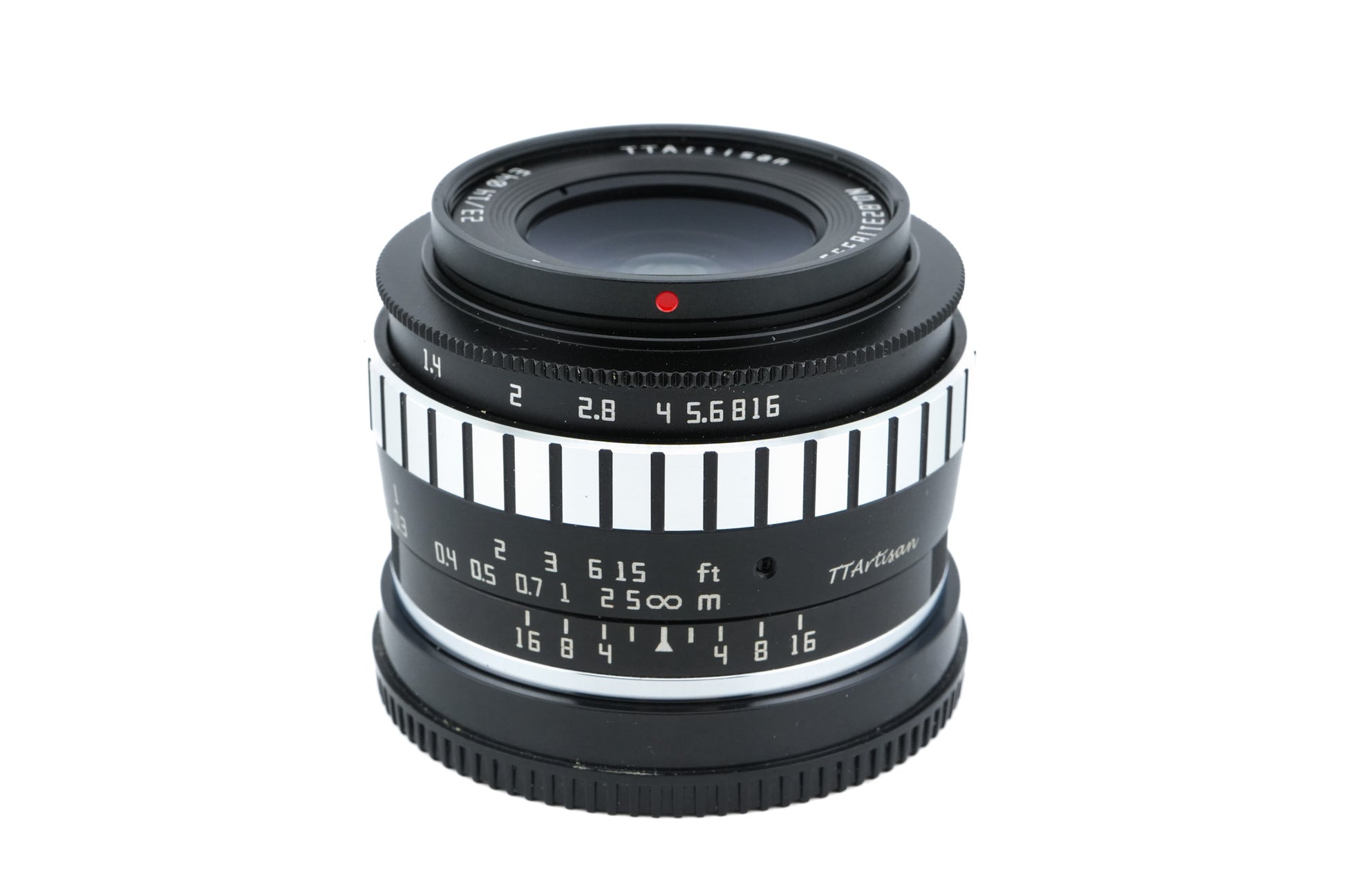 Manual focus wide-angle lens for Sony E-mount mirrorless cameras made by TTArtisan. Metal construction available in black with silver accents.