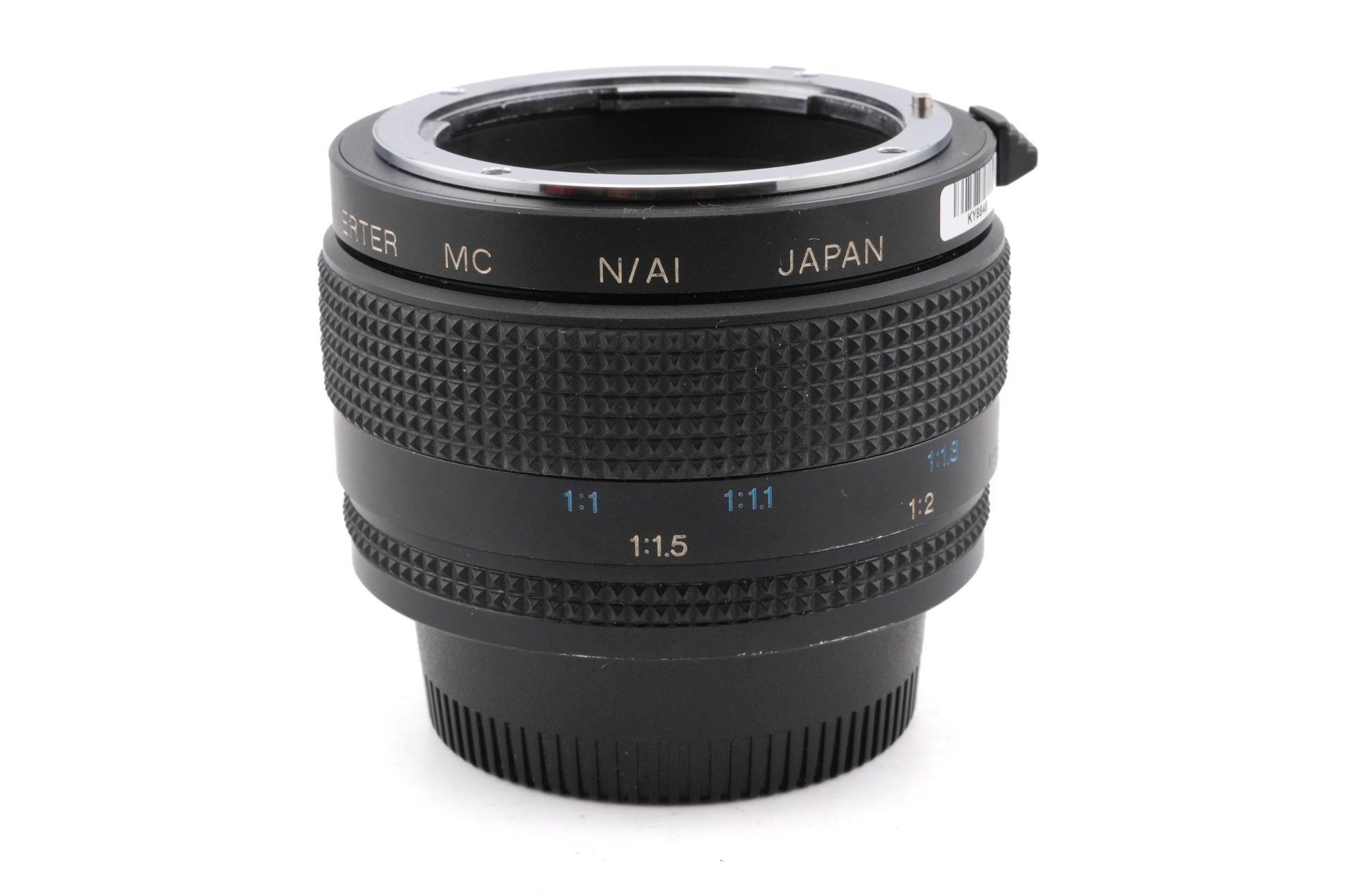 2x teleconverter with adjustable helicoid made for F-mount 35mm SLR cameras and lenses introduced by Vivitar. Metal and plastic body available in black.
