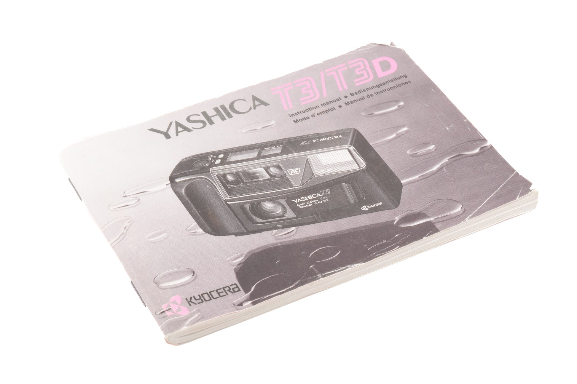 Instruction manual for the Yashica T3 35mm compact camera. Paper booklet.