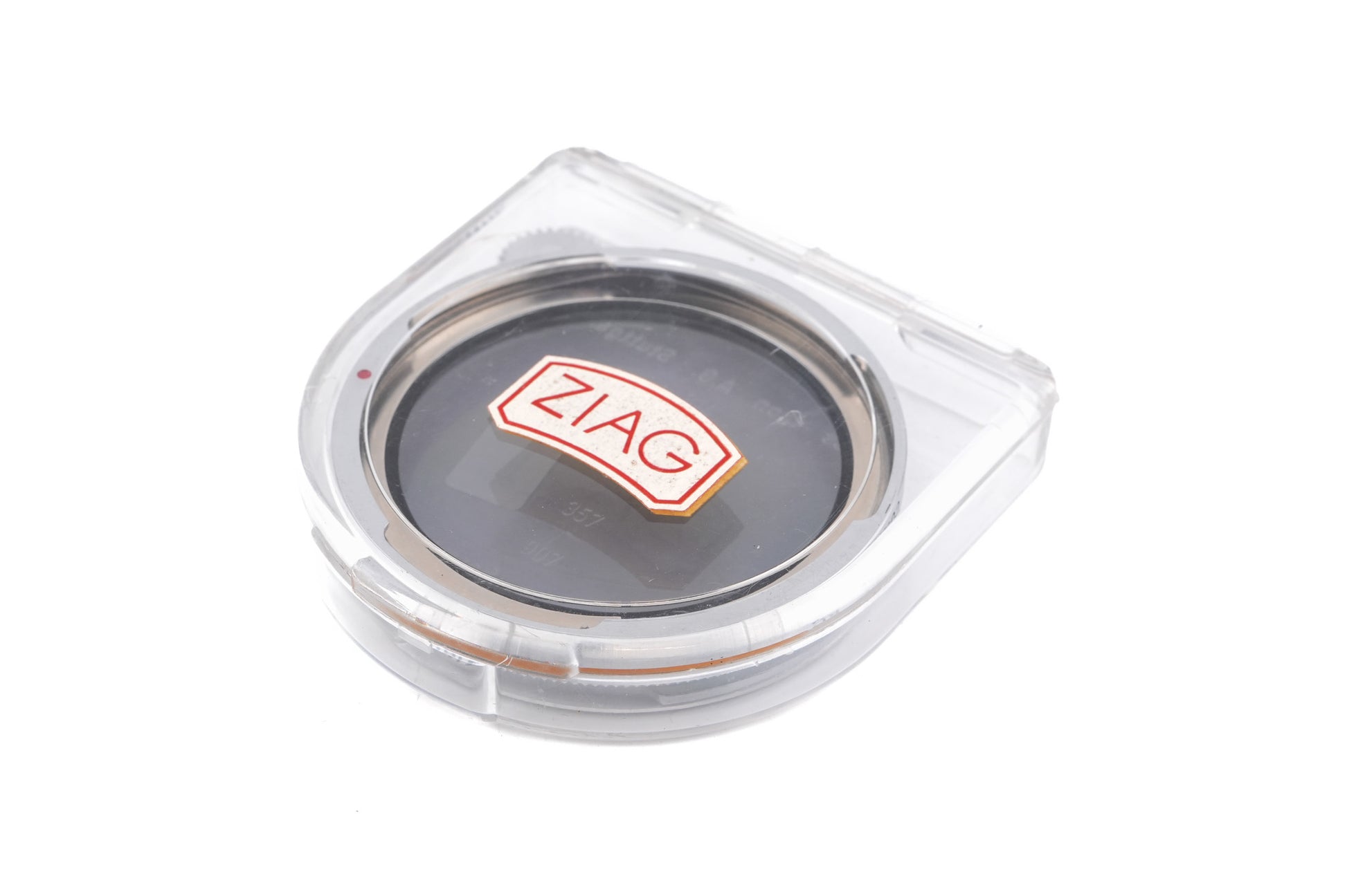 Circular polarizing filter for the Zeiss Ikon Contarex camera. Metal construction available in silver.