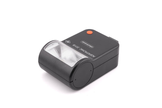Electronic flash made by Agfa for cameras with hot shoes. It has a single flash contact for manual flash and a PC sync port. It has one strength. Plastic body available in black.