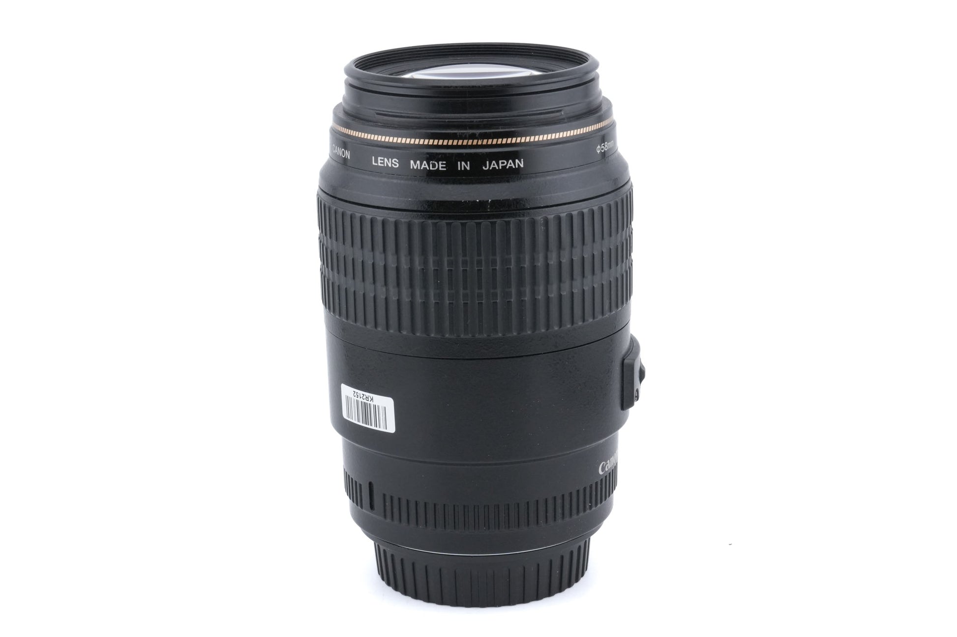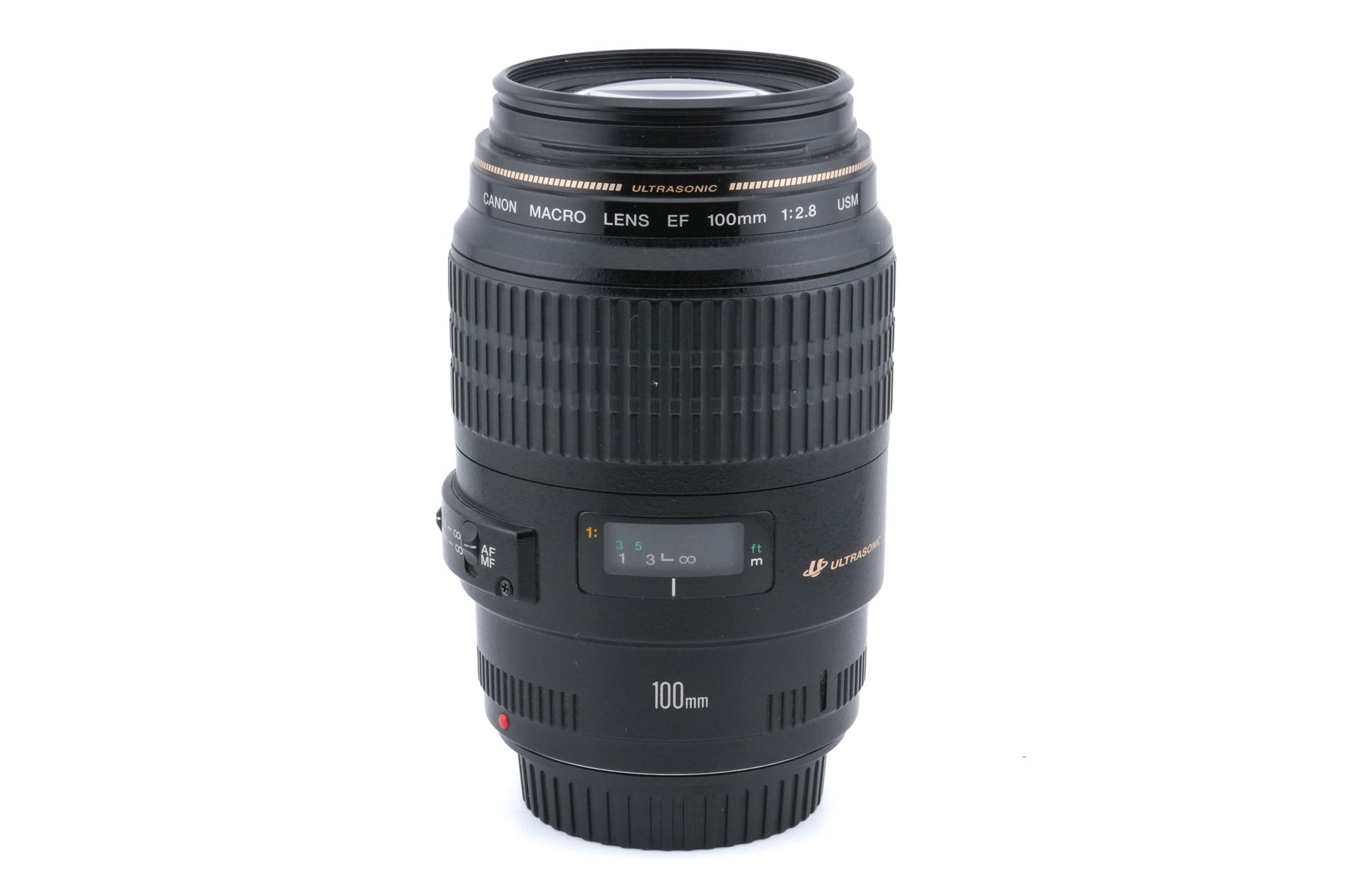 Autofocus telephoto macro lens made for EF-mount SLR cameras by Canon starting in 2000. It is capable of 1:1 macro reproduction and uses Canon's Ultrasonic Focusing Motor (USM) for autofocus. Plastic and metal body available in black.